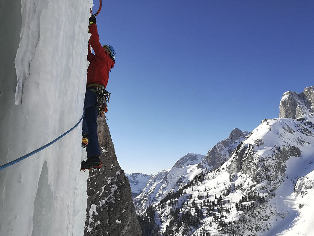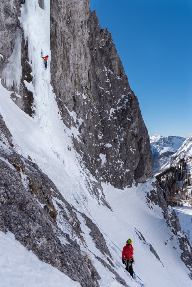 Guter und schwieriger Eisfall links vom klassischen Trawiesfall. Das Eis wächst nur sehr selten durch, deshal hat es mit der Erstbegehung auch etwas gedauert.