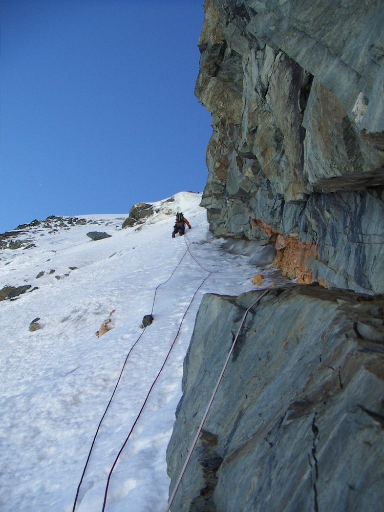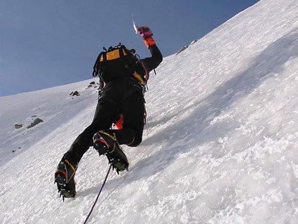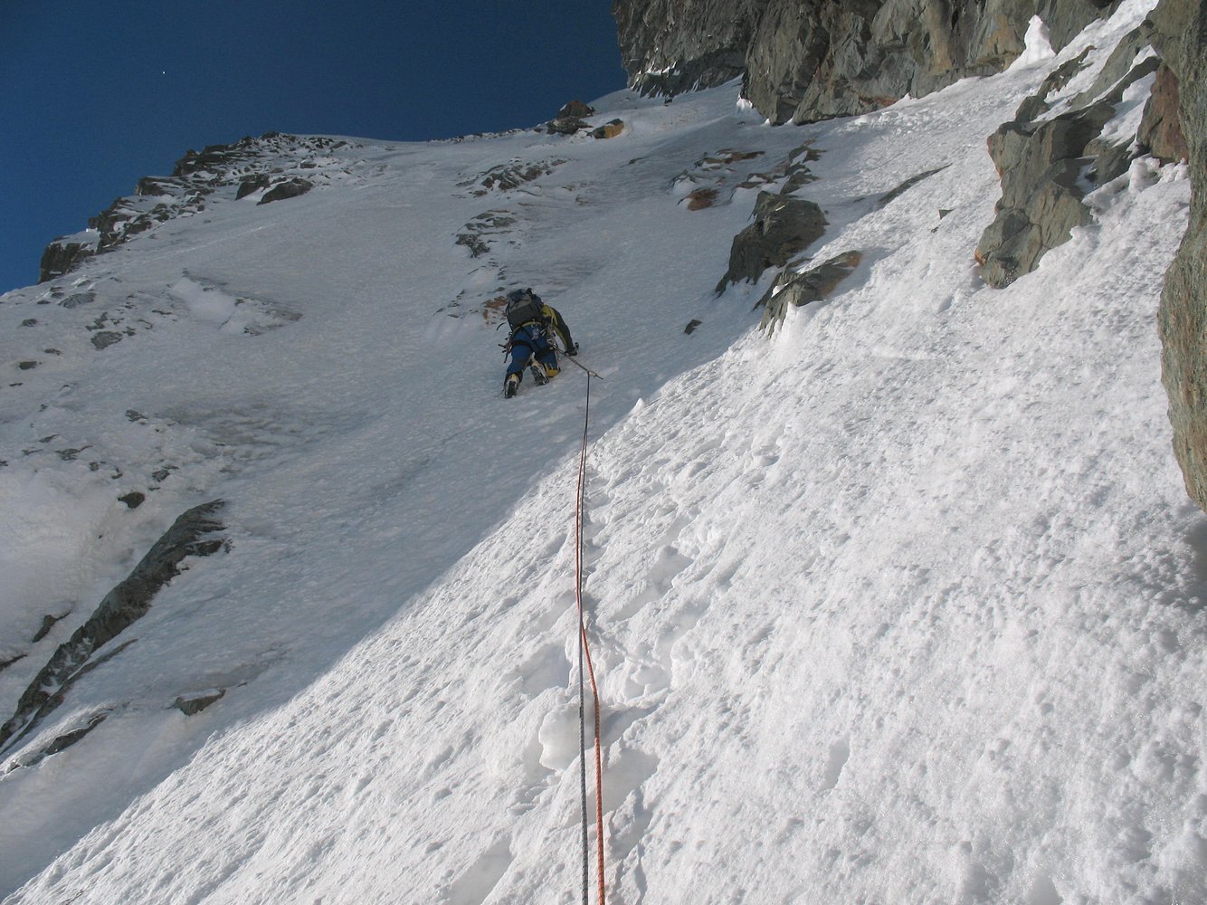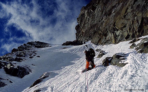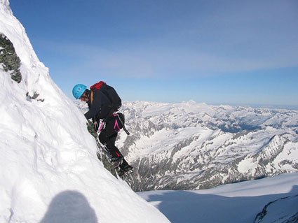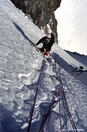 Die Mayerlrampe gehört mit ihren rd. 70° (und Nordwestgrat bis III) zu den schwierigsten Eisanstiegen am Glockner. Seilsicherung, Helm und grosse Eiserfahrung sind hier ein absolutes Muss.