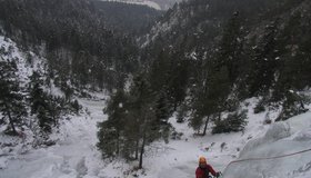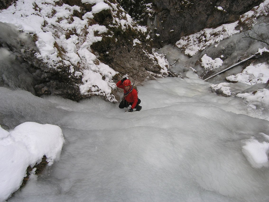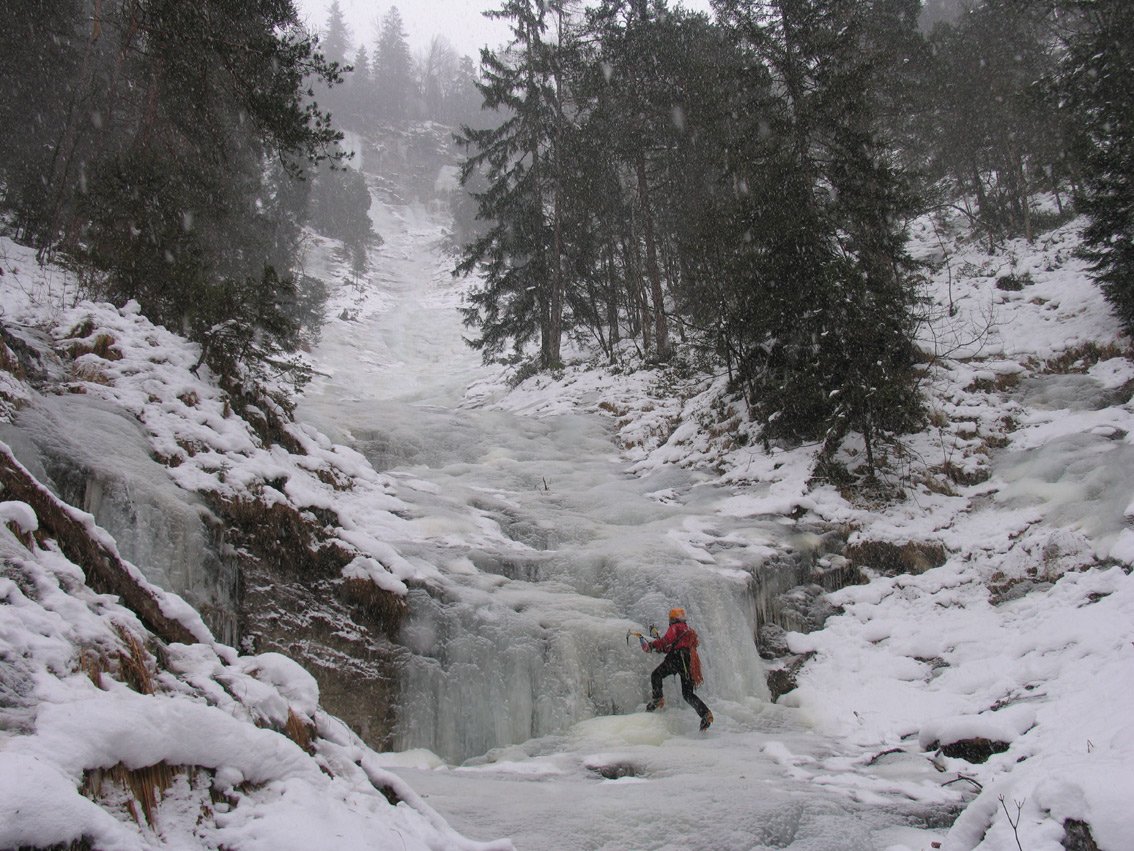 Klettern macht nur bei wenig Schnee Spaß, bei viel Schnee ist das Eis verdeckt und es herrscht im Kessel evtl. Lawinengefahr!