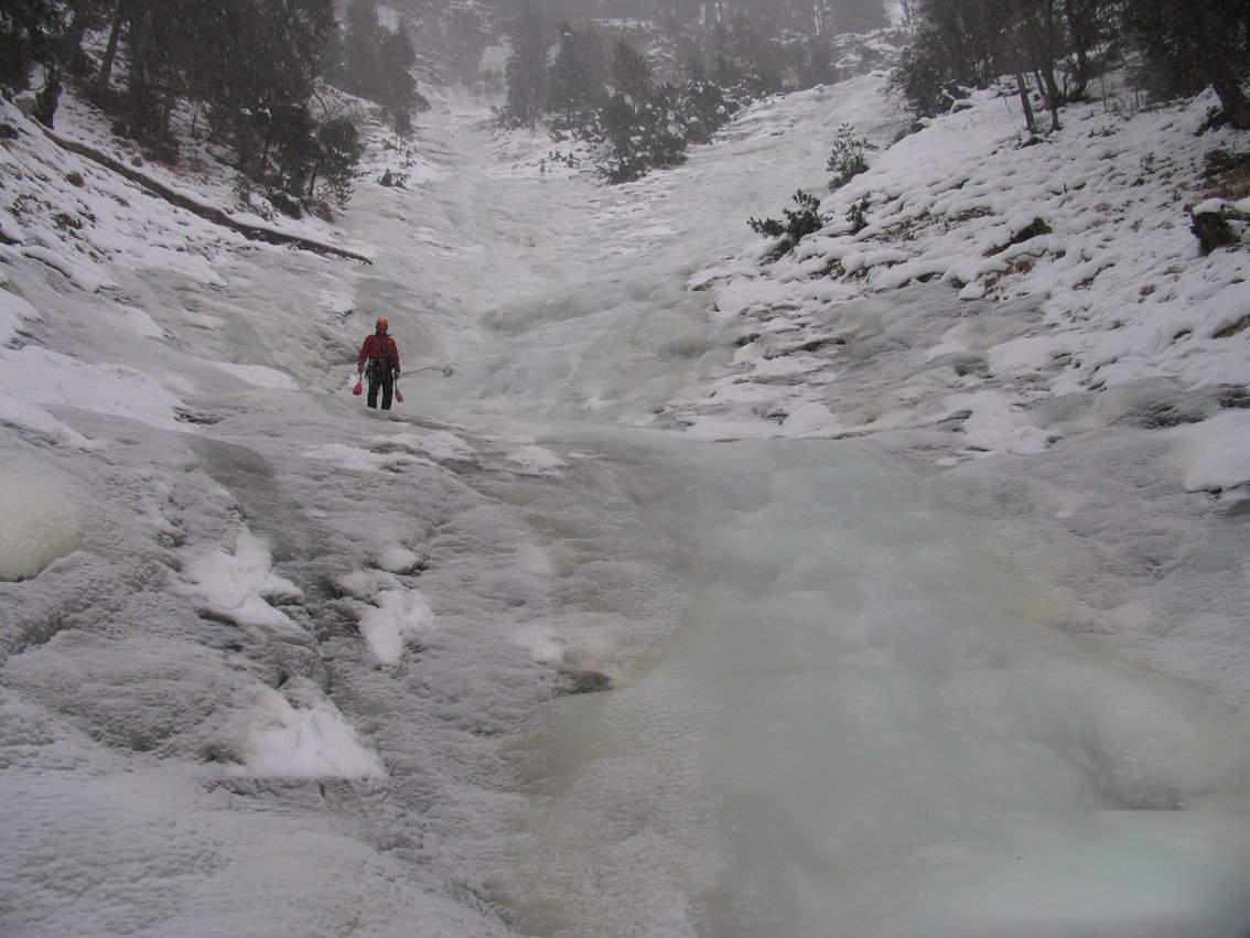 Achtung: Wenn oben Leute klettern, ist man beim „Zustieg“ im breiten Kessel genau in der Schusslinie (Eisschlag).