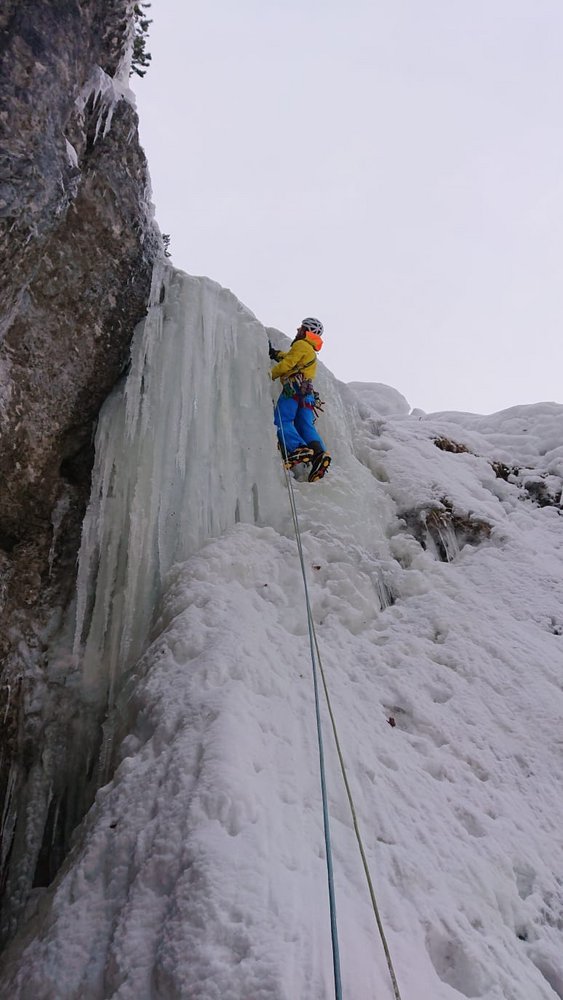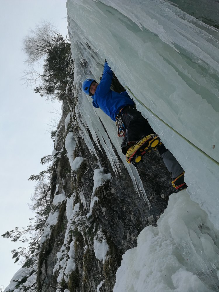 Wunderschöne leider jedoch eher seltene Eisbildung über 2 SL (a 50m) im Stoissengraben. Die 2. Seillänge über die Säule belohnt die Eiskletterei und bildet das eigentliche Herzstück des Monozacks. Auf Grund des kurzen Zustieges (10 min) vom Parkplatz jedoch optimal.