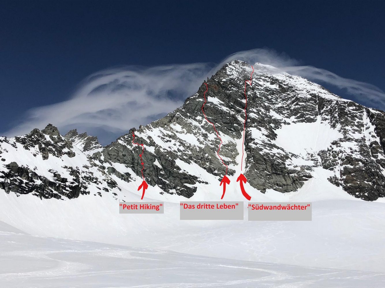 Die Route endet am Stüdlgrat. Am Schnellsten über den Stüdlgrat wieder zum Einstieg absteigen und über den Zustiegsweg retour. Mann kann natürlich auch über den Stüdlgrat weiter auf den Gipfel des Großglockners aufsteigen und über den Normalweg runter.