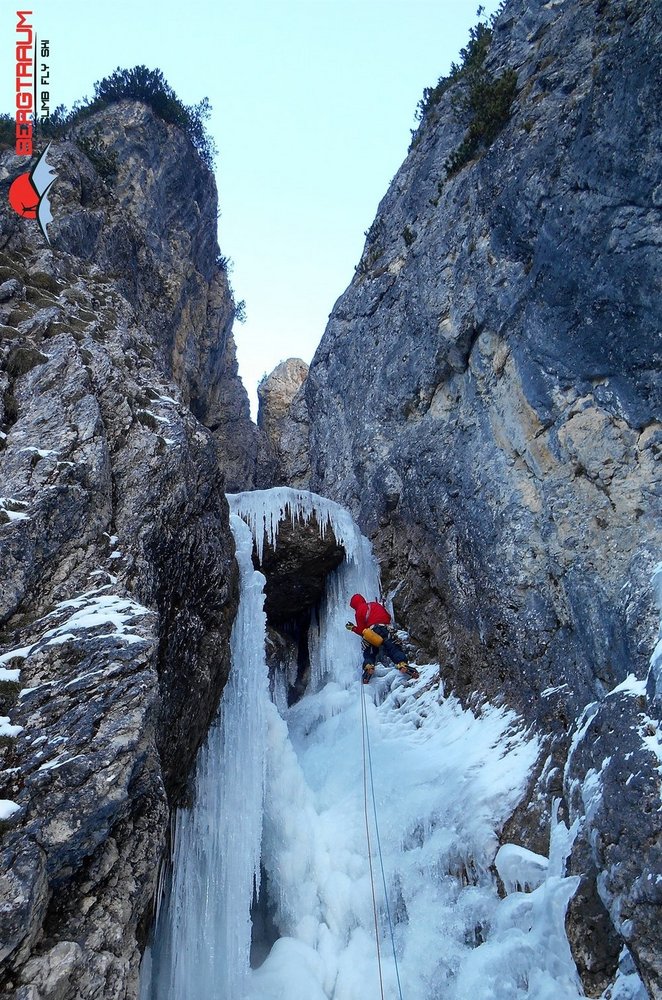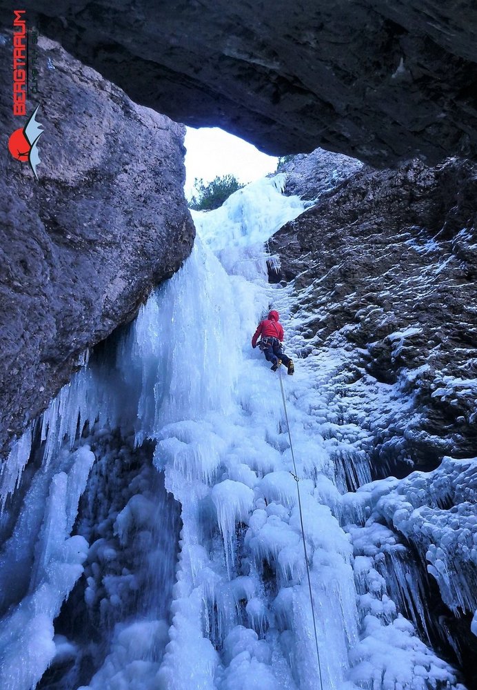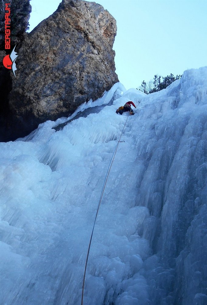 Ein sehr schöner, nicht allzu schwerer Eisfall. Super Ausblicke aus einer engen Schlucht heraus.