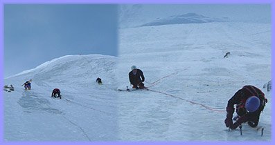 Kombination von 4 Eiswänden im Bereich des Taschachfernerns, Eis bis max 55 und Grad Fels 1- (bei ausaperung)