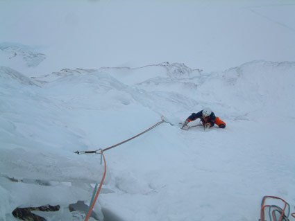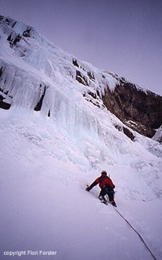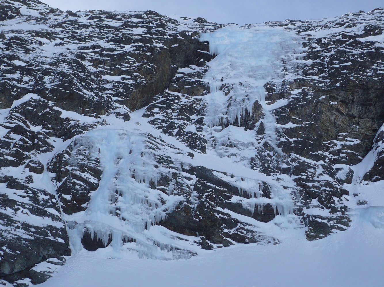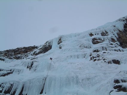 Der Fall hat die Schwierigkeiten im unteren Abschnitt, oben folgt Genußkletterei im max. 2ten Eisgrad.