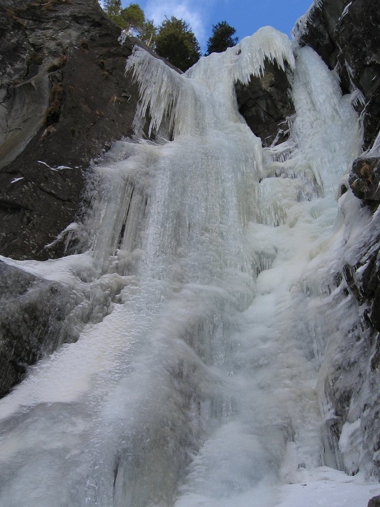 Kurzer leichterer Eisfall unweit des Gasthofes Breitlahner, direkt über der Klausenalm.