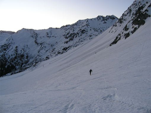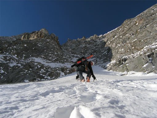 In der Regel macht man die Tour im Frühjahr nach einer kalten Nacht - nach Neuschneefällen hohe Lawinengefahr. Ohne Ski dürfte die Tour sehr lang werden, fehlt in der Rinne der Schnee wird es zum unguten Schotter-Abenteuer.