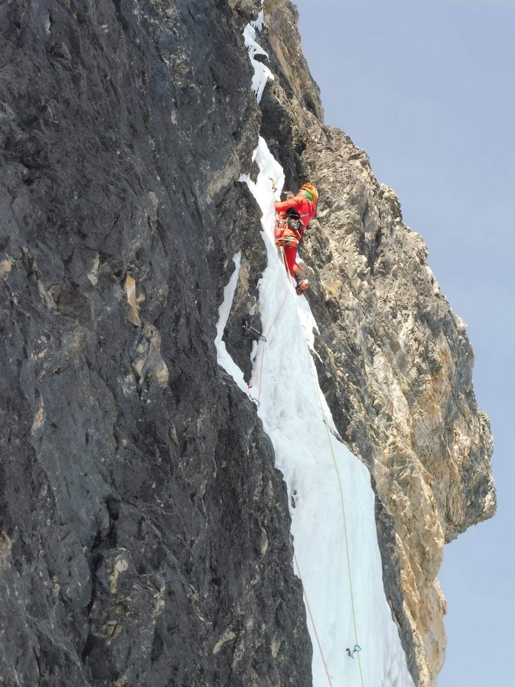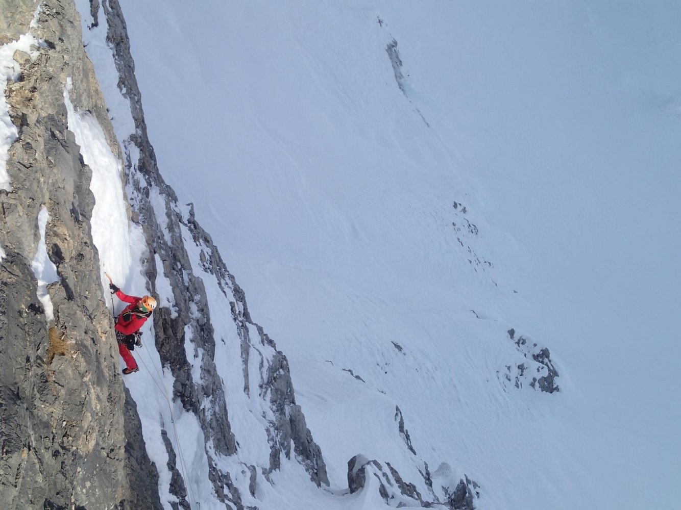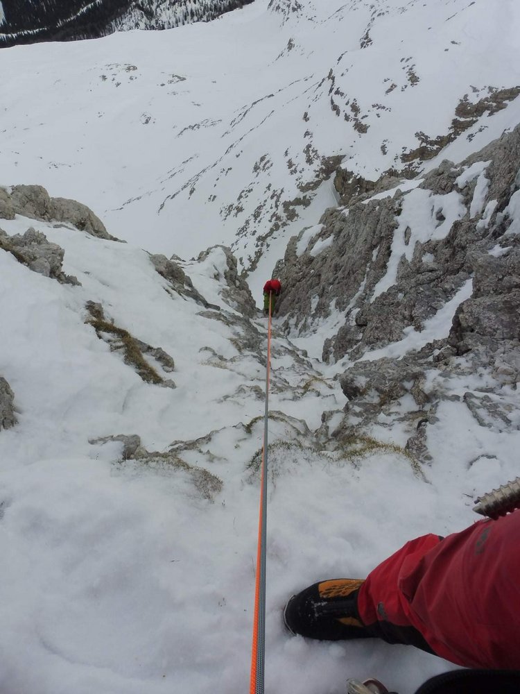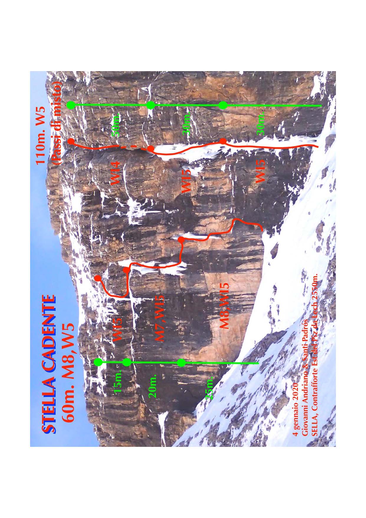 Rechts der Route Stella Cadente - Sternschnuppe befindet sich noch eine schöne drei Seillängen Route, die sich auch nur selten bildet. Die Route befindet sich im unteren Teil gegenüber dem Piz da Lech, ausgerichtet nach Osten, auf 2550 m.