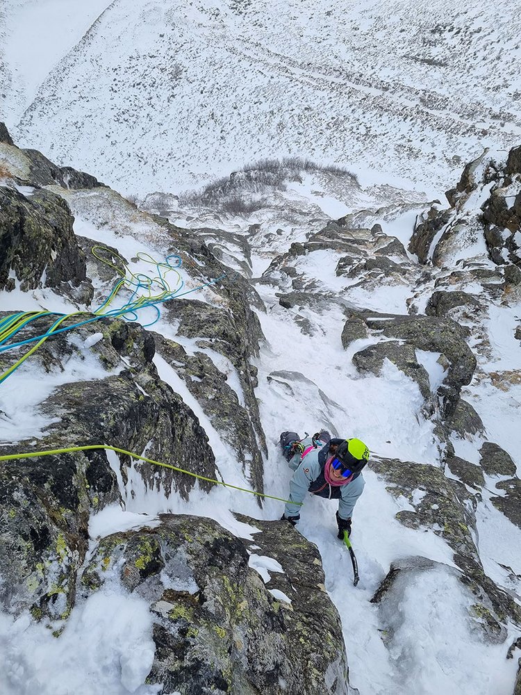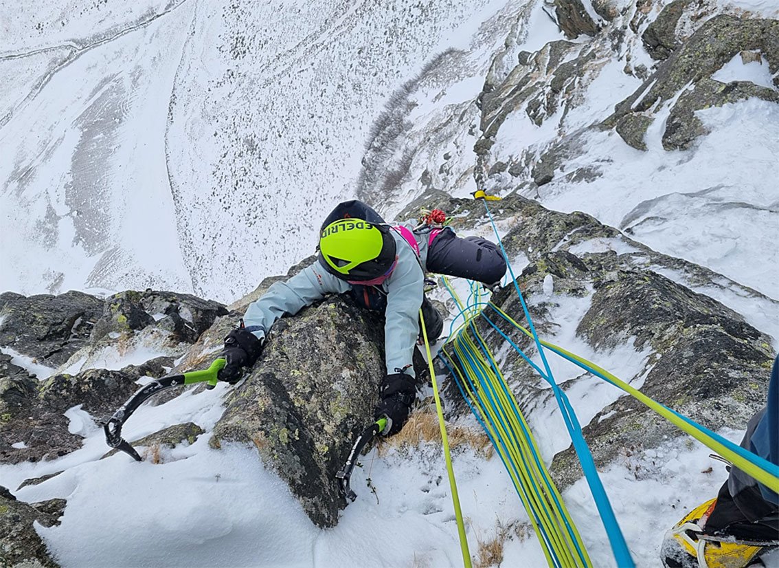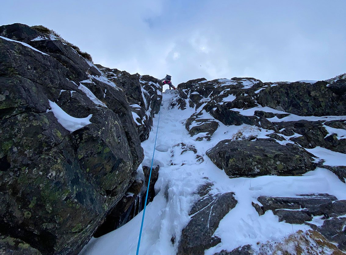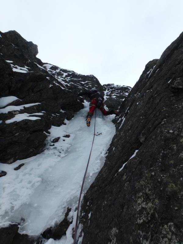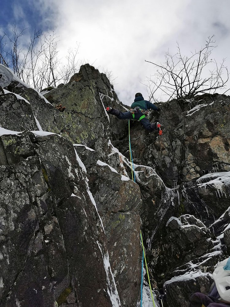 Relativ kurze, aber sehr schöne Mixedroute für die einiges an alpiner Erfahrung nötig ist, obwohl es einige Bolts in der Route gibt. Die Route eignet sich als Übungstour für längere alpine Mixedrouten.
