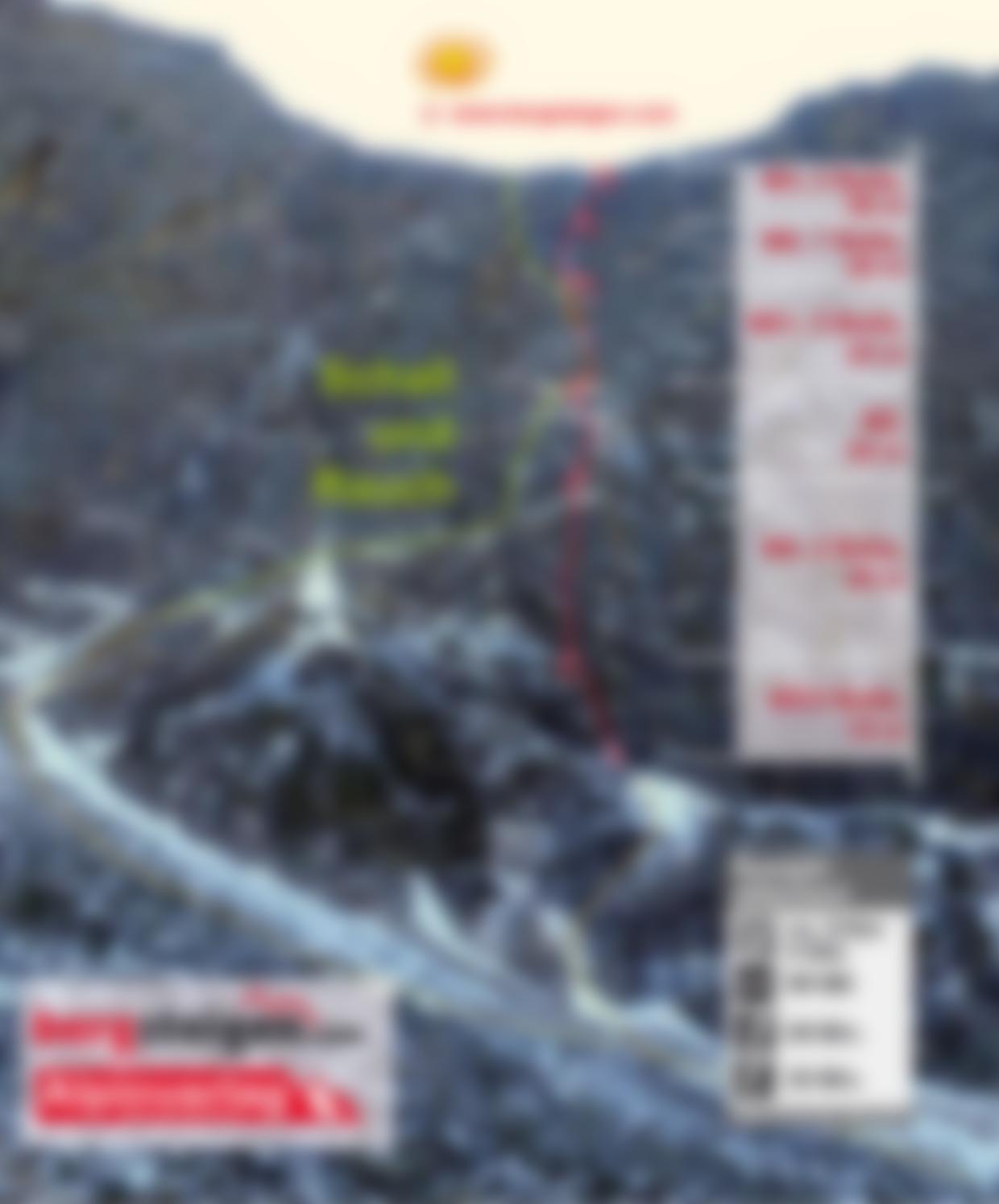 Links davon und in der Mitte kurz auf gleicher Linie verläuft die Route: Schall und Rauch 40° und M5+
