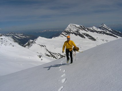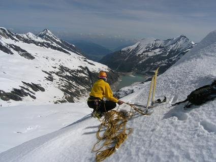 Firn bis 60° und bei Ausaperung Fels bis 2.