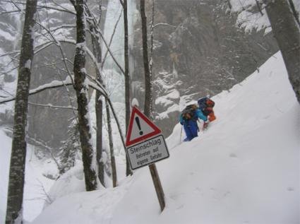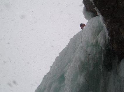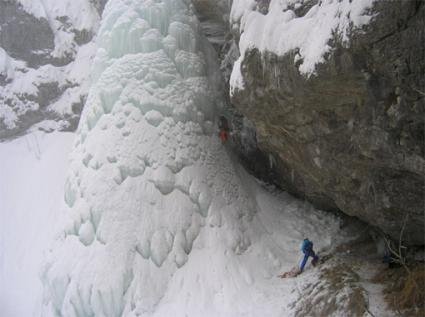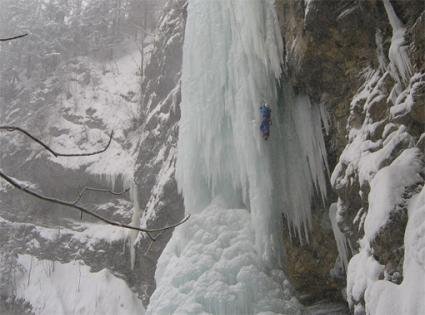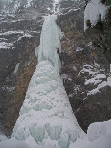Der Eisfall ist extrem schwierig bis gar nicht einzuschätzen und deshalb mit Vorsicht zu genießen (im Jahr 2005 war der Fall nur fünf Tage begehbar, dann ist er wieder zusammengebrochen)!!!