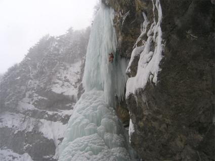 Sehr anspruchsvoller Eisfall, der nur selten bis zum Boden wächst.