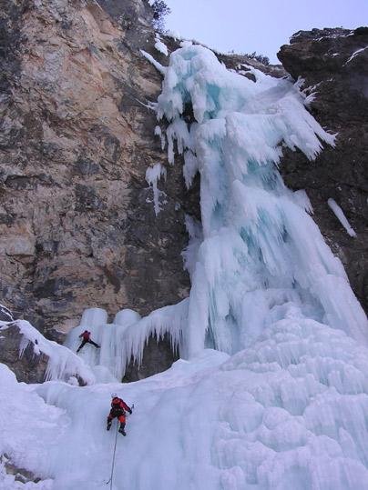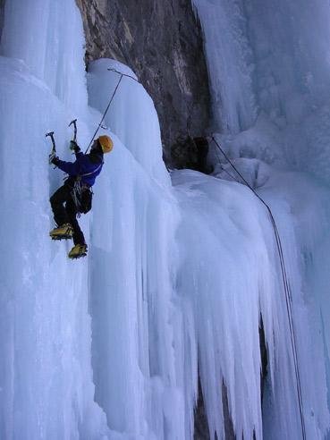 Anspruchsvoller und bedrohlich aussehender Eisanstieg unter dem Seebensee - ein schweres Testpiece, das man gemacht haben sollte.