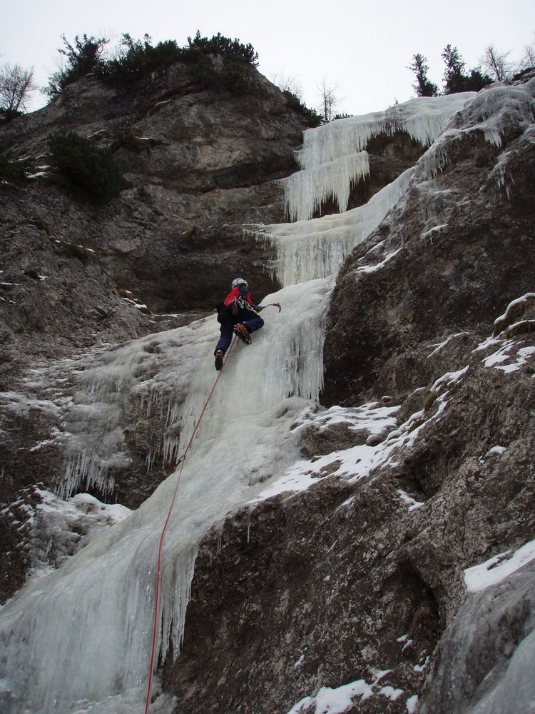 Abseilen: Entlang des Wasserfalles abseilen (Eissanduhren).