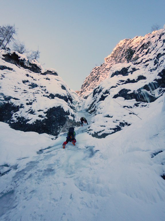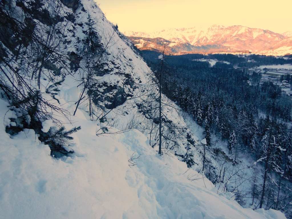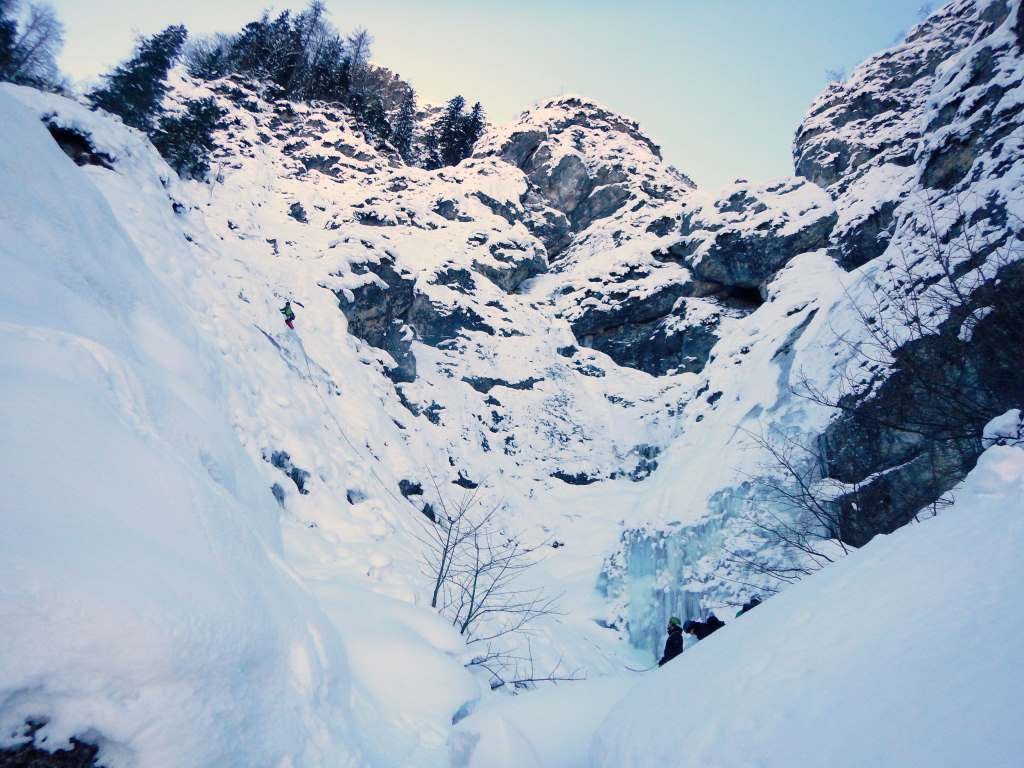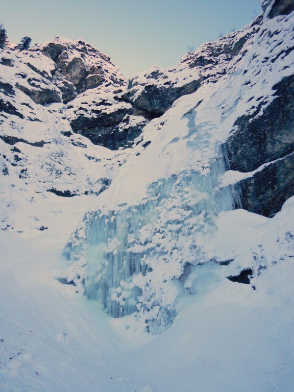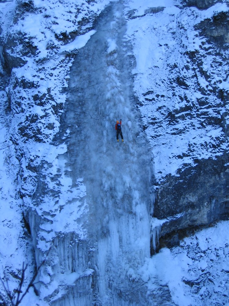 Einer der besten Einsteigerwasserfälle im Bereich von Hallstatt ! Der Fall zieht rechts der markanten Wasserleitungsröhren bei Steeg/Hallstättersee in einen rinnenartigen Graben herunter. Die Kletterei verläuft über bis zu 40 m hohe Stufen und wird auch durch Flachstücke unterbrochen.