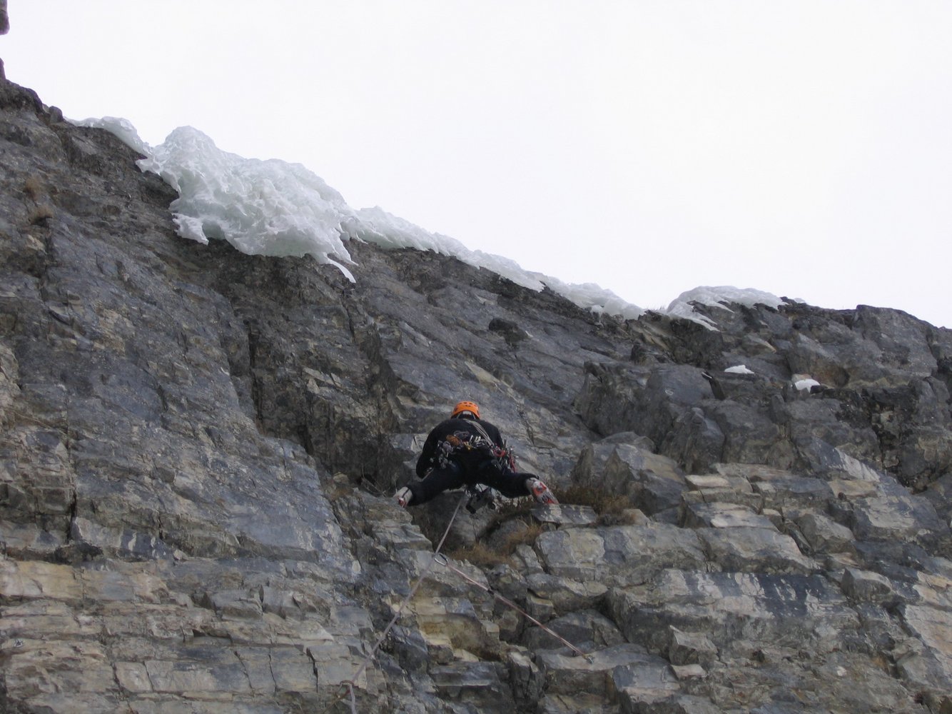 Mixedlinie gleich neben der Tour "Kaisersäule" an derGreimuth ostwand Erst Felsteil, anschließend steiler Zapfen.