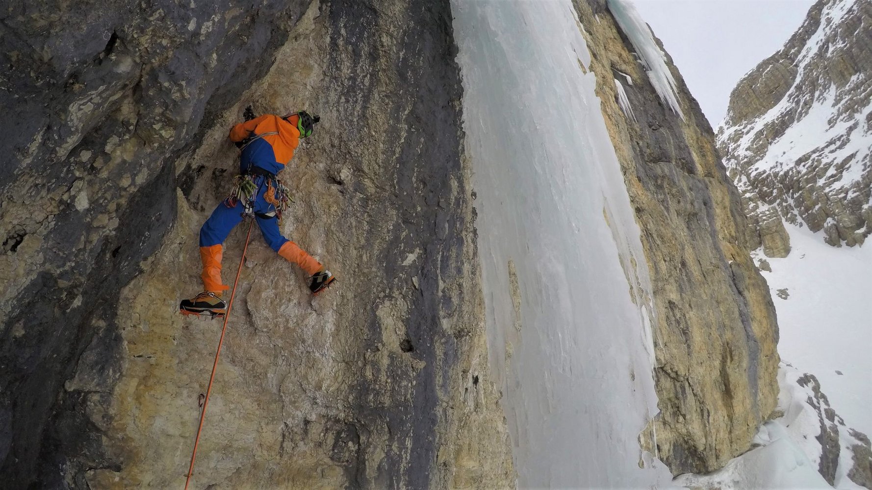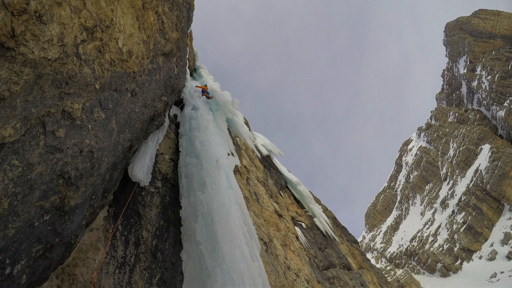 Eine super Linie von Johannes Egger und Freunden im Val Lasties in unmittelbarer Nähe zum Cassiopeo. Erstbegangen ausschließlich mit friends, wurde kurz darauf die M5+ Länge mit sieben bolts versehen (jetzt hat man nicht mehr ganz so viel Angst…). Im Dezember 2019 verlängerten dann Simon Messner und Martin Sieberer diese Linie um drei weitere Seillängen bis zu einer markanten Säule, die in ein riesen Felsloch hinaufführt. Achtung auf die SO- Lage des Eisfalls (Sonneneinstrahlung)!