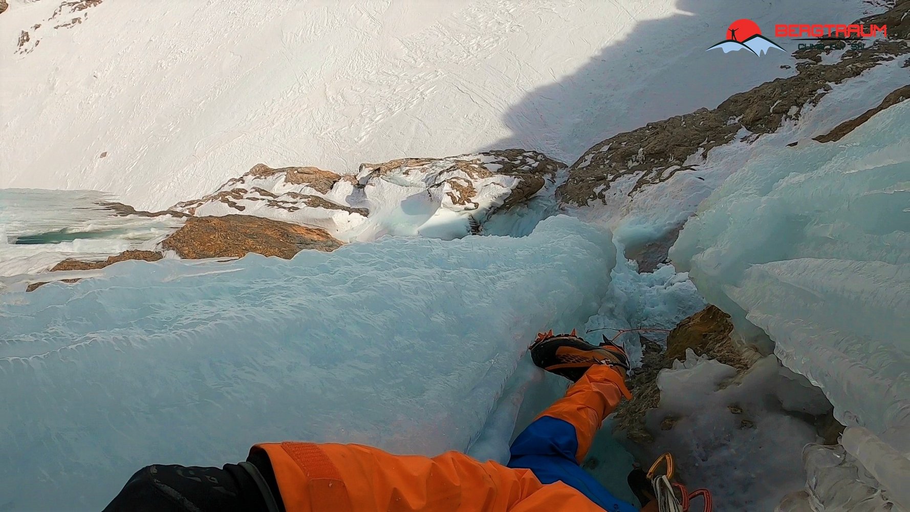 die beiden Säulen in der Tour variieren stark. Bei uns die oberste Länge WI 6- lt. Erstbegeher WI 5.
