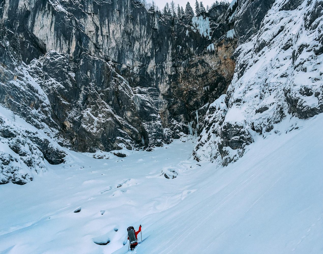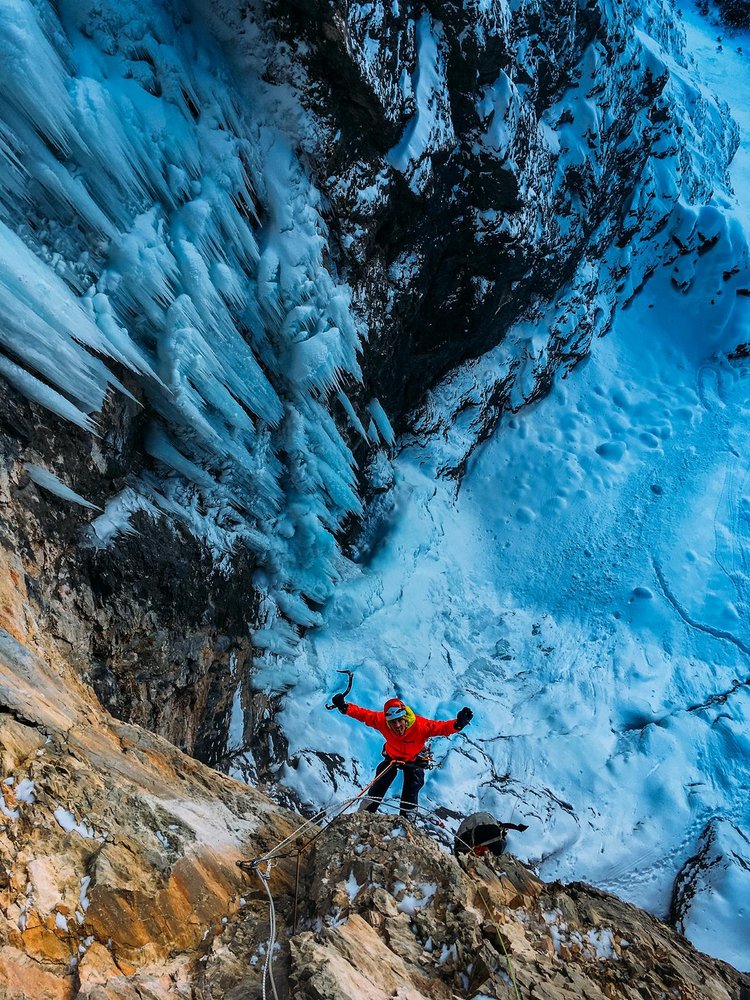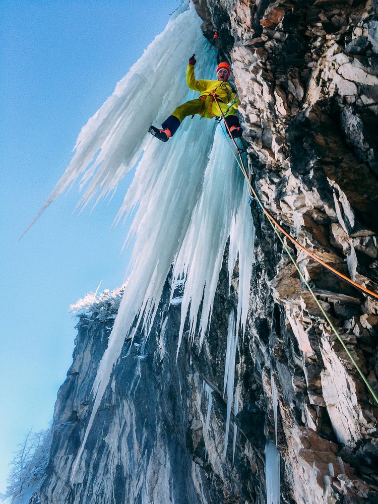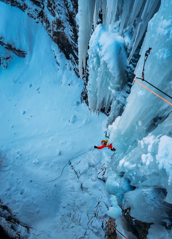 Extreme Mixed-Linie von unten direkt über die einzelnen freihängenden Zapfen, in das große Eisnest.