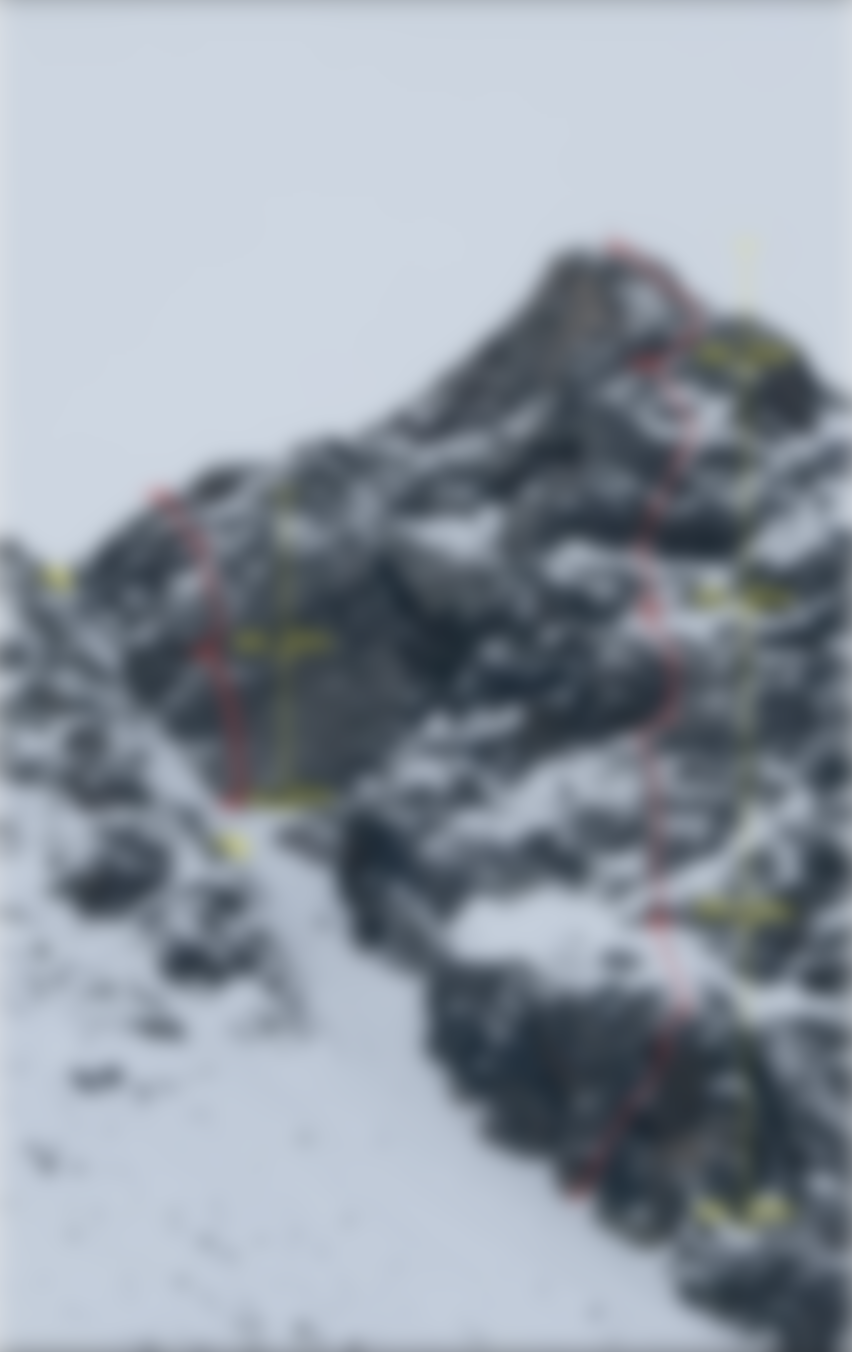 Kurze und knackige Mixedkletterei in gutem Fels. Es wird die abweisende und steile Felsplatte im linken Wandteil über eine geniale und logische Routenführung durch den gut ersichtlichen halbmondförmigen Riss erklettert. Die Schlüsselseillänge ist gut mit Bohrhaken abgesichert. Mobile Sicherungsmittel lassen sich auch unterbringen.
