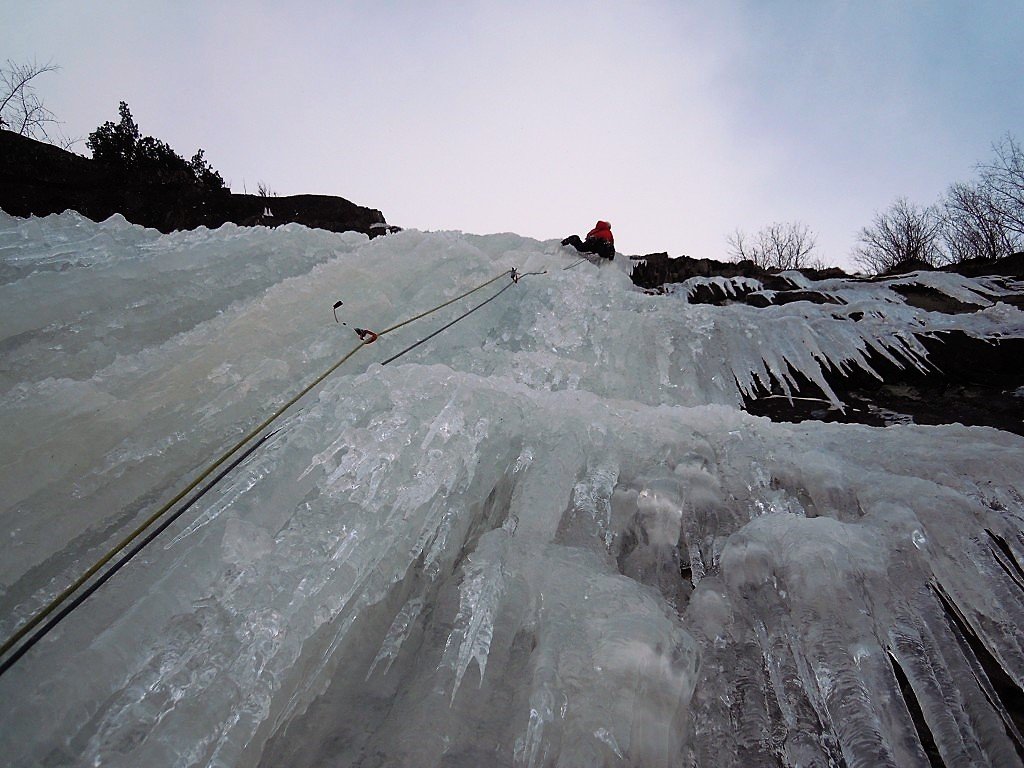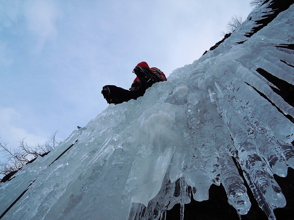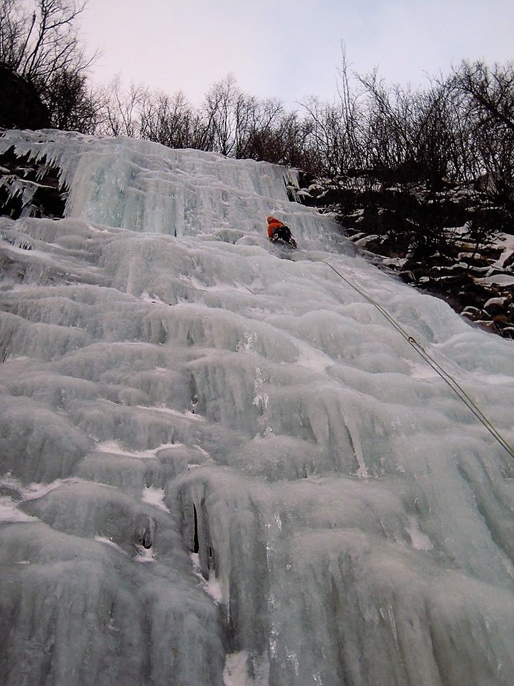 Ähnlich wie “Alles in Buddha” ein sehr schöner Eisfall in einer tollen einsamen alpinen Umgebung. Vielleicht nicht ganz so spektakulär wie dieser in seiner Form, jedoch fast abwechslungsreicher zu klettern: dünnes Eis wechselt mit spannenden Überstiegen und richtigem Röhreneis ab (zumindest bei unserer Begehung). Die Einsamkeit wird jedoch mit einigen “Mankos” bezahlt: Da ist zum einen der lange Zustieg. Zum anderen ist der Eisfall sehr lawinengefährdet: vor allem die Hänge drüber sind steil und hoch, auch wenn es scheint, dass der Fall im Wald endet. Also wirklich nur bei sehr wenig Schnee einsteigen! Passen jedoch alle Faktoren ist es ein sehr schönes tagesfüllendes Unternehmen. Zudem gibt es einige weitere Eisfälle im Seebachtal, mit denen der Eisfall zu kombinieren ist (Achtung Wildschutzgebiet im Vorderen Seebachtal). Durch seine Höhenlage ist er bis spät im Winter kletterbar.