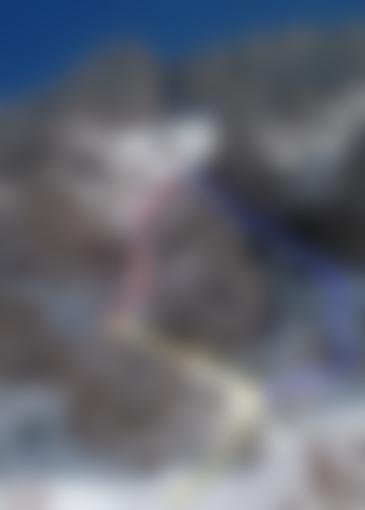 Entweder nach der 2. SL abseilen (50 m), oder nach der 3 SL a) bis zum 2. Stand zurückklettern oder b) orographisch links durch eine Rinne absteigen.