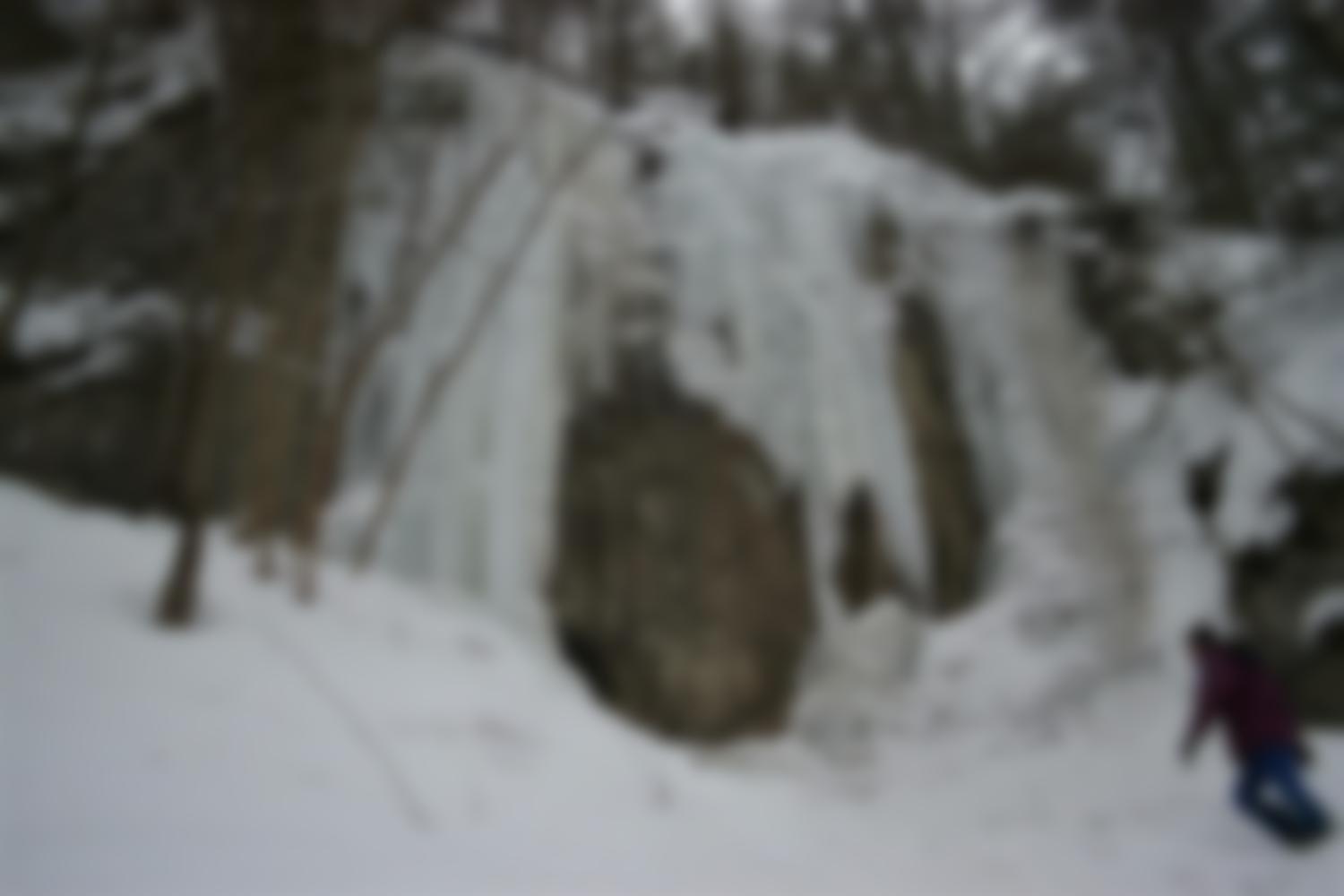 Vom Parkplatz über eine kleine Brücke und steil hinauf zu den Eissäulen.