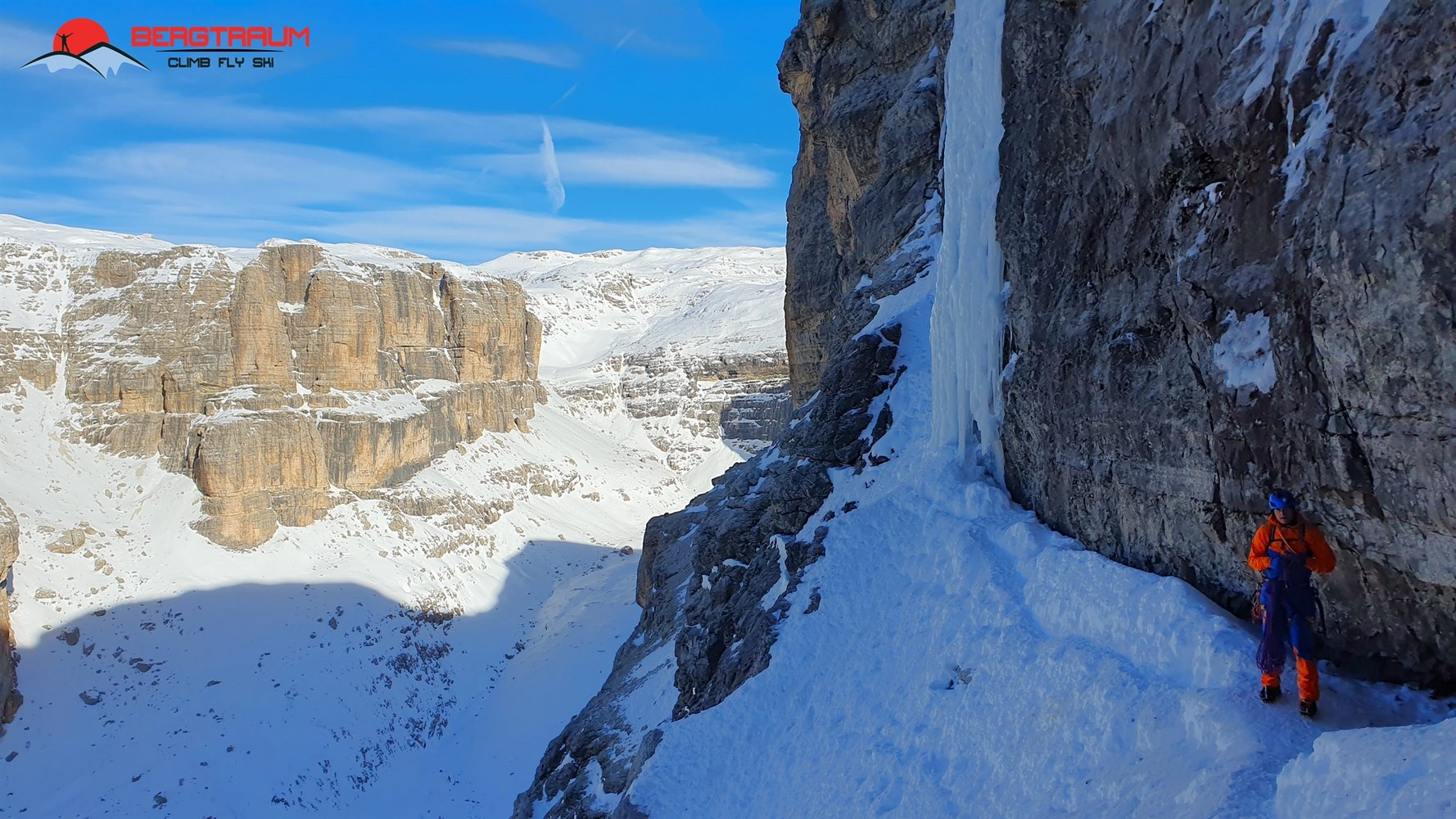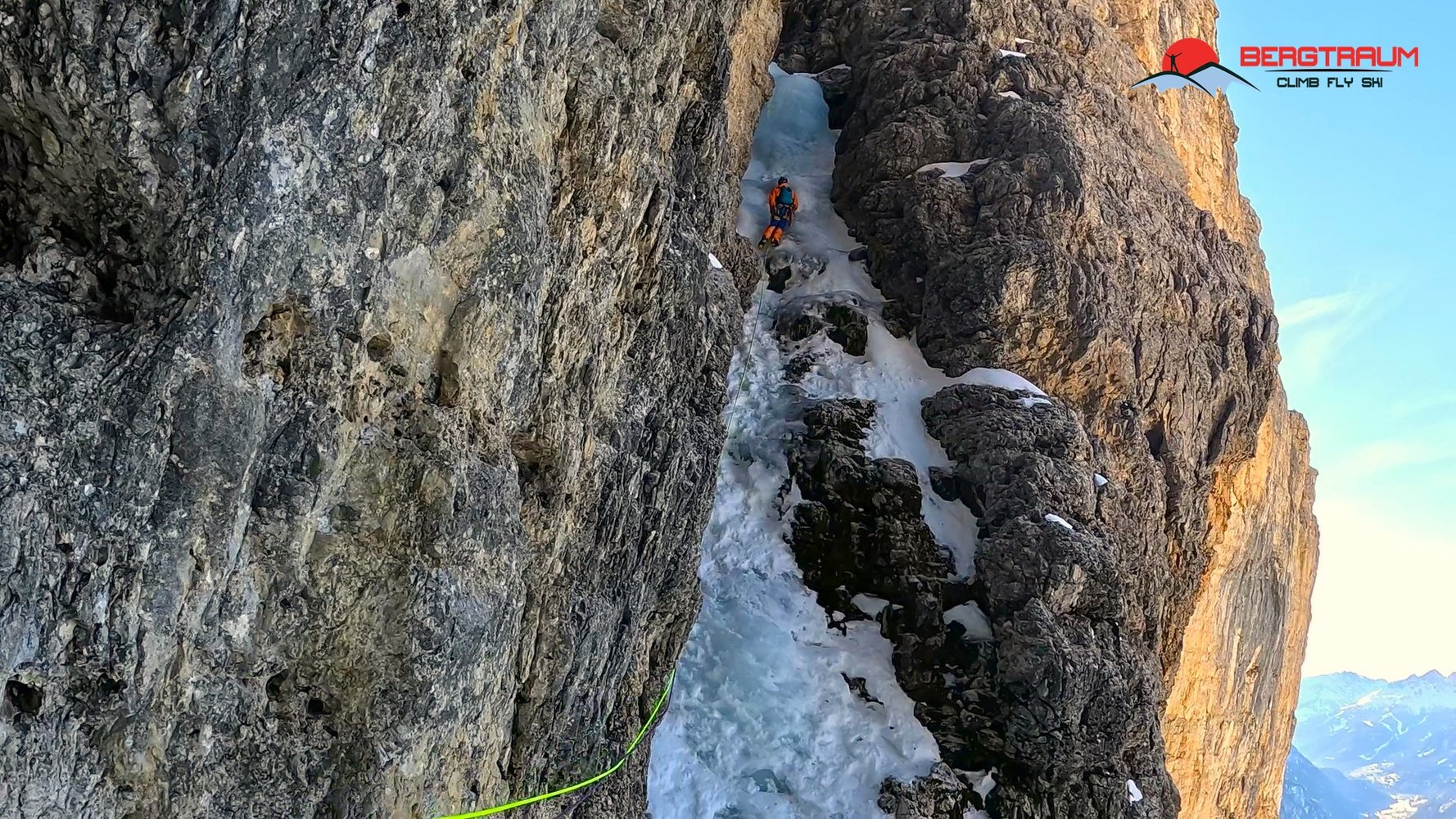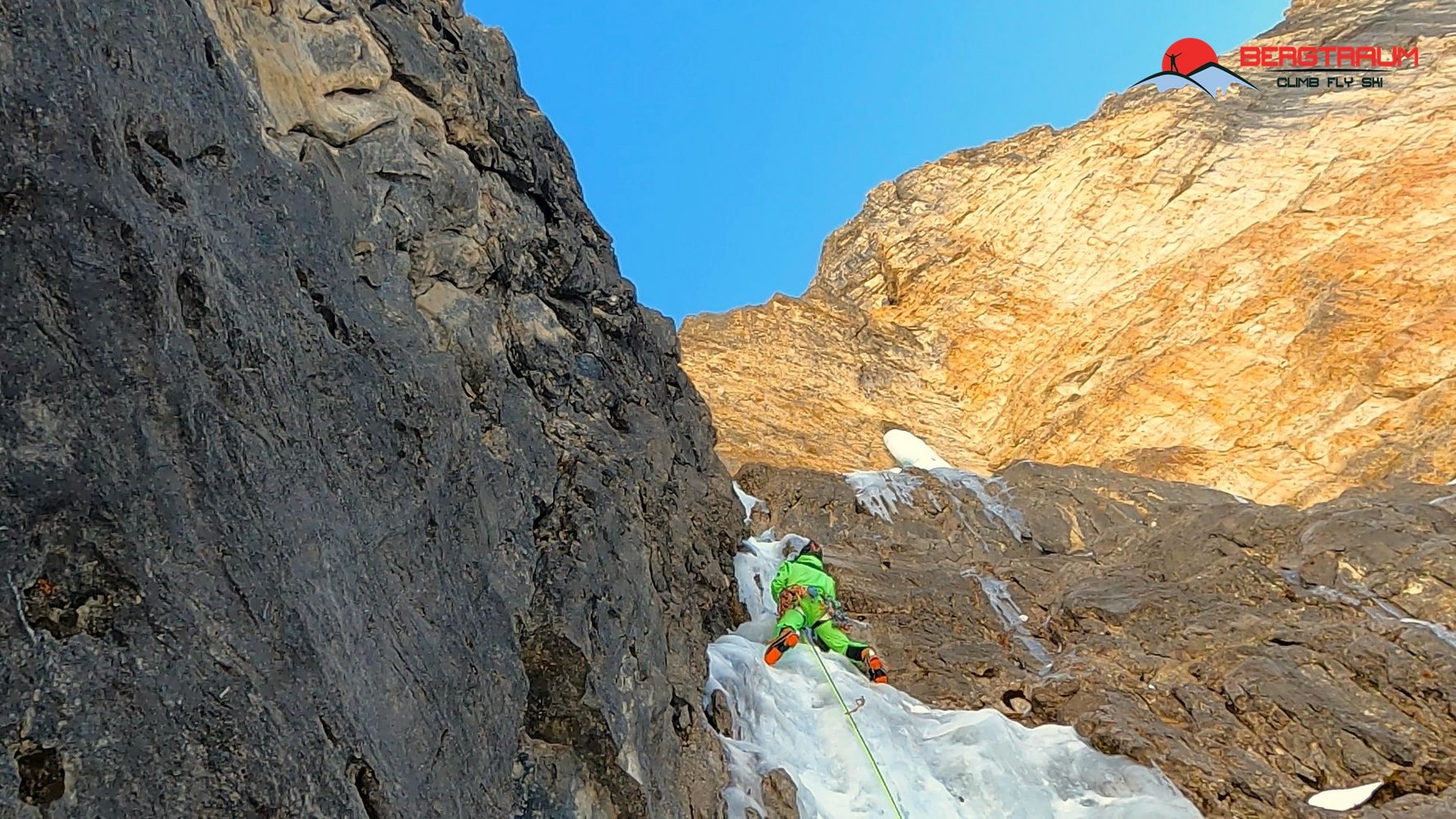 Im Jännerer 2022 von Weiss/ Hilpold erstbegangen, zählt diese eindrucksvolle Linie unmittelbar neben der brandneuen Avatar zum „musthave“. Stände sind eingerichtet, ansonsten kann gut mit einem kleinen Satz friends abgesichert werden.. Das Panorama dort und die Kletterei sind magisch schön.