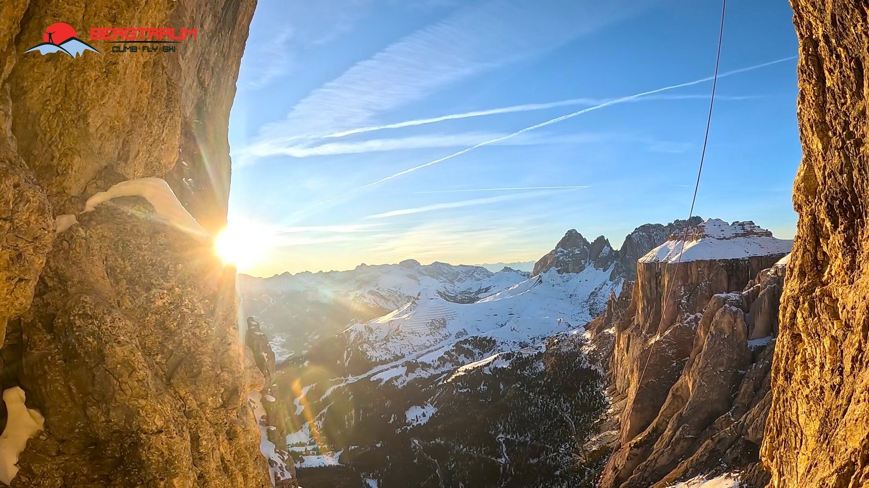 Entweder über die Tour abseilen und auf selben Weg zurück zum Ausgangspunkt. Oder vom Ausstieg in südöstliche Richtung weiter zur Bergstation der Pordoi Seilbahn aufsteigen und mit dieser ins Tal (letzte Talfahrt 16:00).