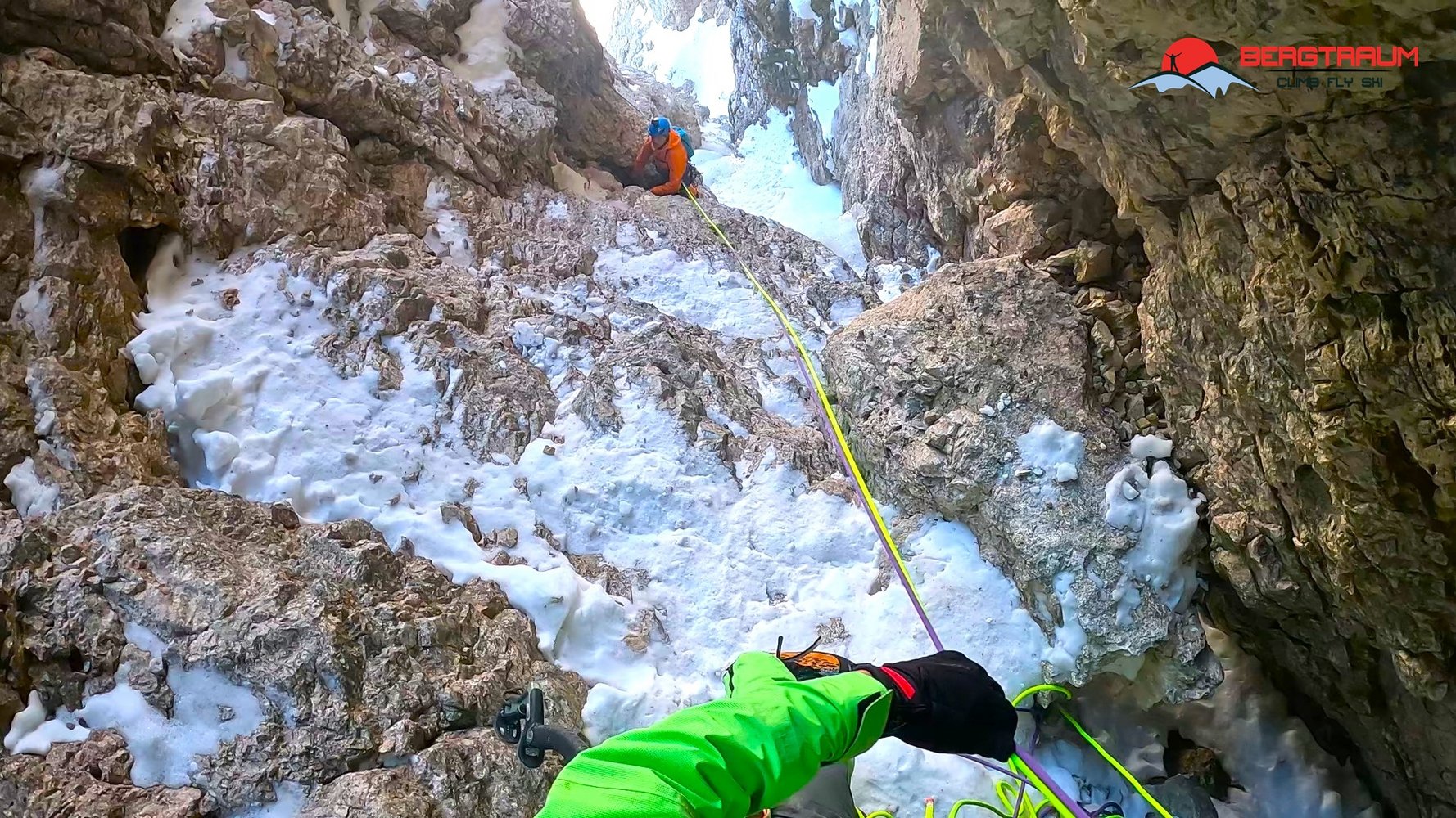 Wunderschönes Couloir in imposanter Umgebung- Zustieg kann je nach Schneeverhältnissen lang und auch lawinengefährdet sein. Bei wenig Eis in der vierten Länge super Mixedkletterei über ein kleines Dach. Die letzten beiden Längen sind fast immer trocken, lösen sich aber gut auf und sehen schwerer aus, als sie sind.
