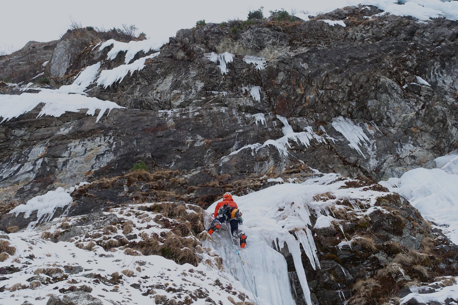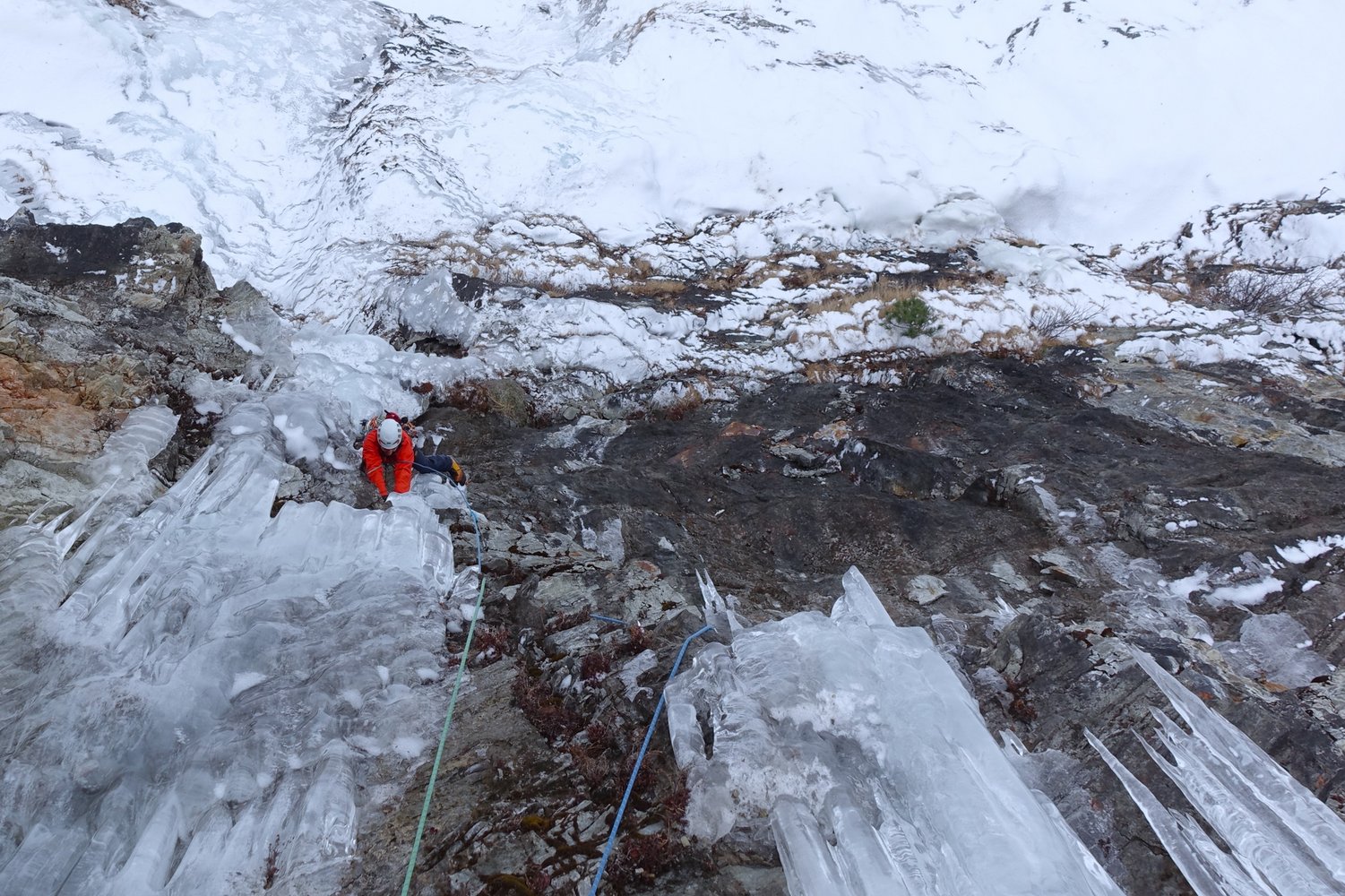 Martin Feistl und Felix Bub am 05.02.2023 (rotpunkt) nach Erstbegehung der 2. Seillänge am 03.02.2023 in 4,5 Stunden.