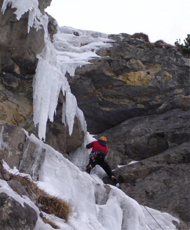 Die erste Länge M5 ist heikel da oft wenig und nur schlechtes Eis. Bei viel Eis deutlich leichter. Die oberen Seillängen sind max. WI 3+.