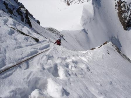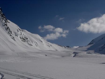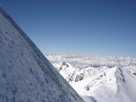 Die doch relativ unbekannte NW-Wand des Weißkugels stellt ein ansprechendes Eisziel auf den dritt höchsten Berg Österreichs dar. Bei guten Verhältnisse im Frühsommer kann man die Wand ohne Felsberührung durchsteigen, wobei der untere Teil - also das große Eisfeld - meist schon blank ist.