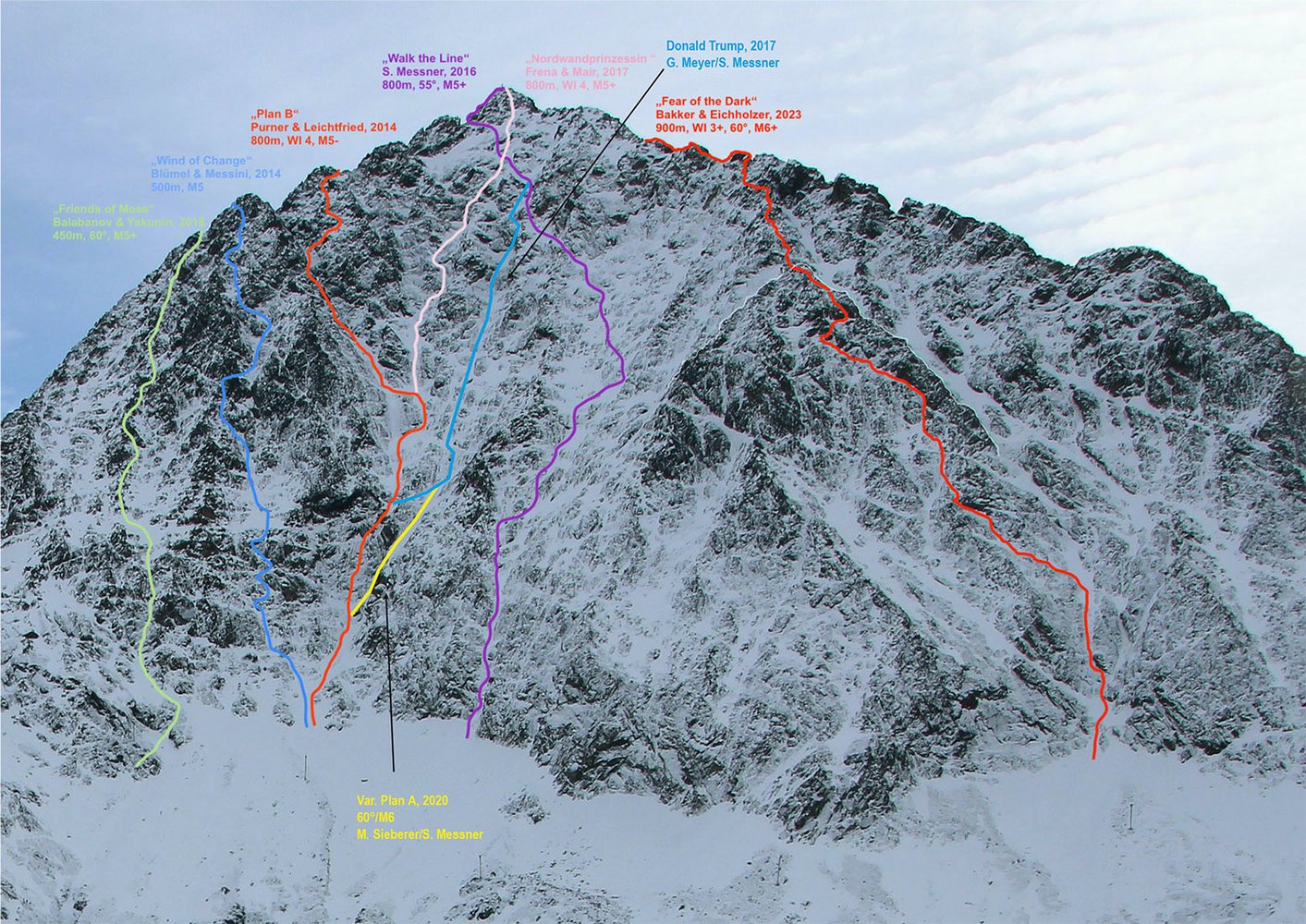 Anspruchsvolle kombinierte hochalpine Route bei der Wiederholer über viel alpine Erfahrung verfügen sollten.