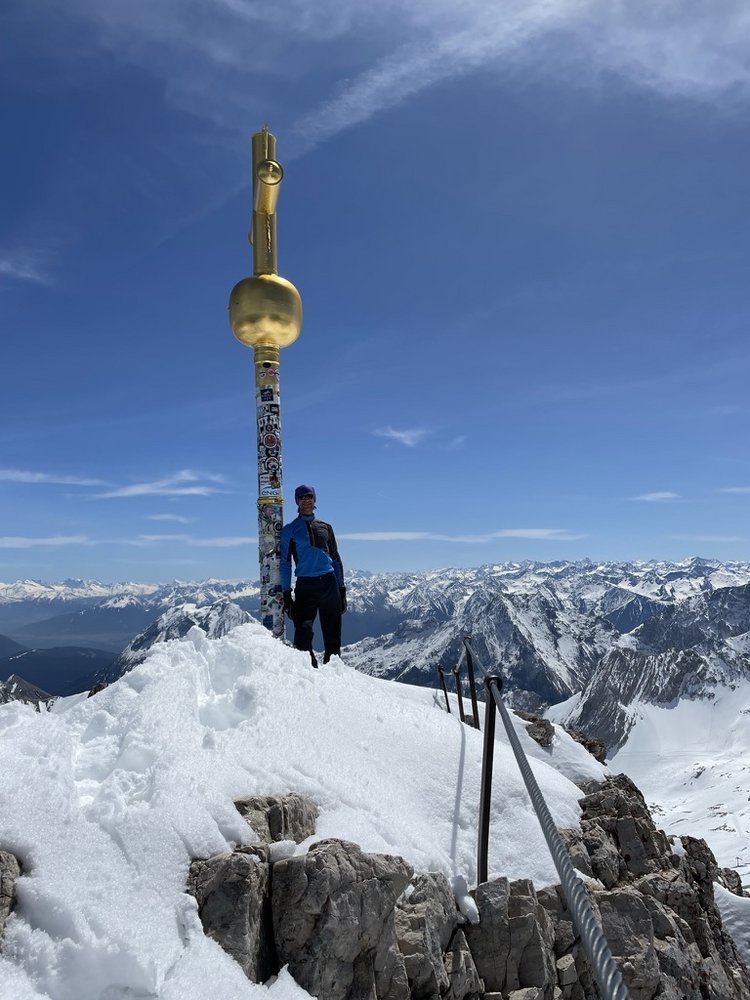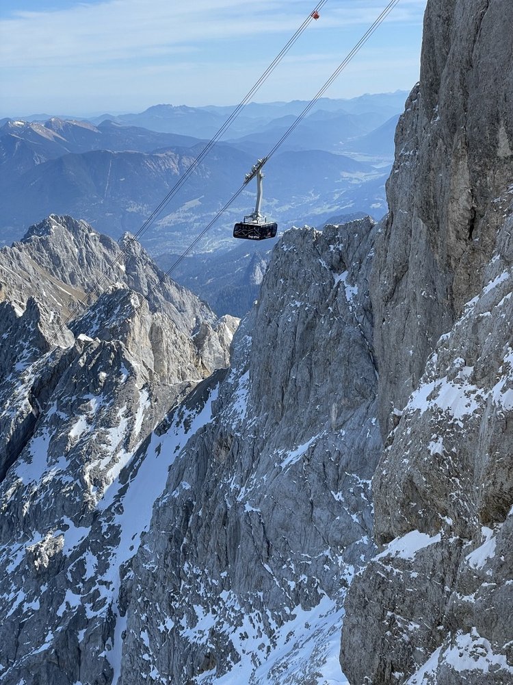 Entweder bequem mit der bayerischen Zugspitz-Seilbahn in wenigen Minuten ins Tal (man kann aus der Gondel nochmals die Route sehen) oder um mehrere Stunden länger via Stopselzieher-Anstieg zurück ins Tal.