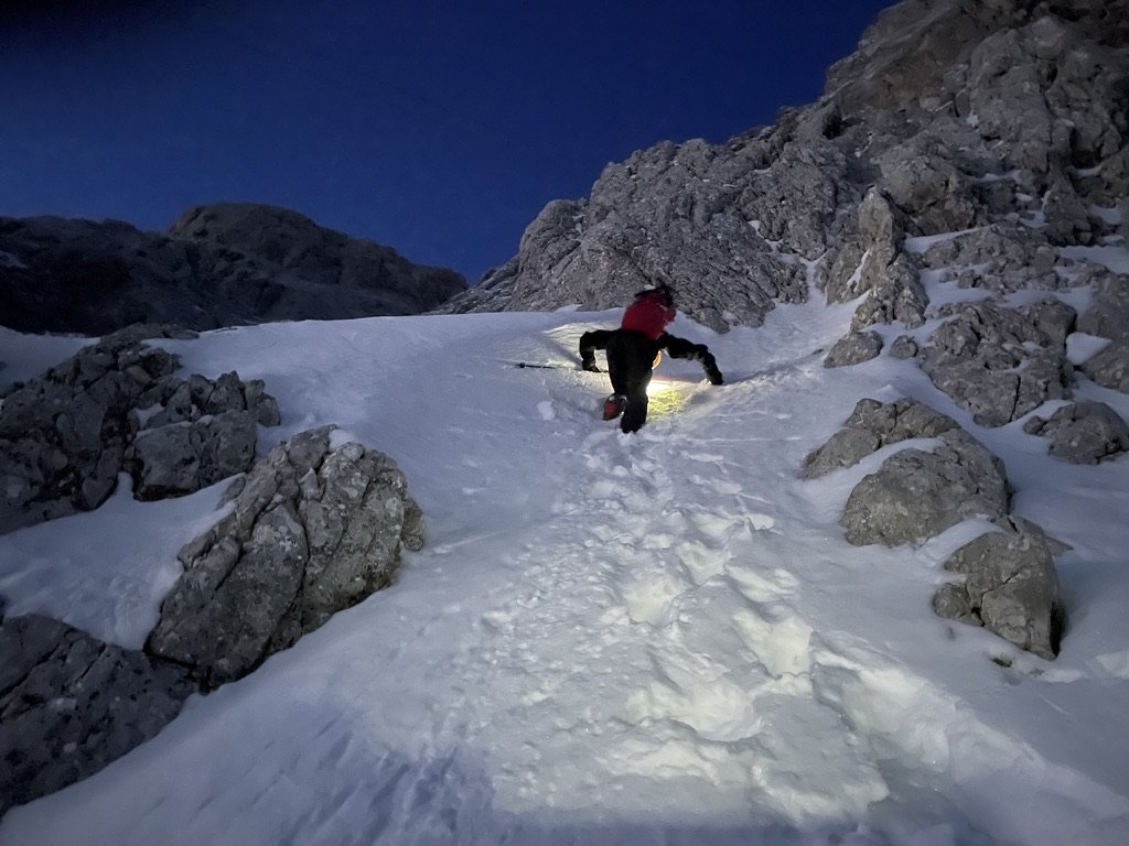 gute Stirnlampe (u.a. wegen Routenfindung im Vorbau unterhalb bayerisches Schneekar)
