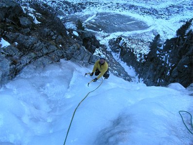 Abseilen über die Tour - wer ganz hinauf klettert steigt rechts über eine Lawinenrinne ab.