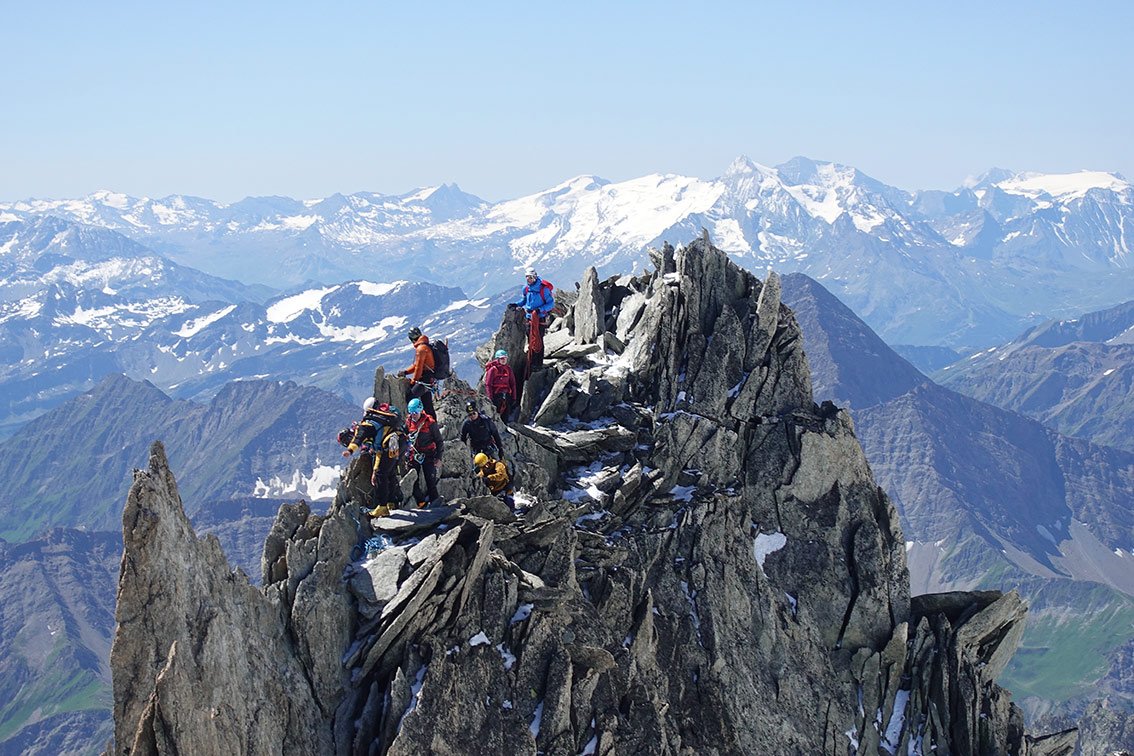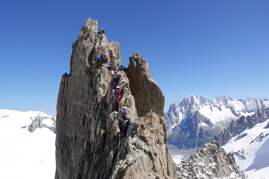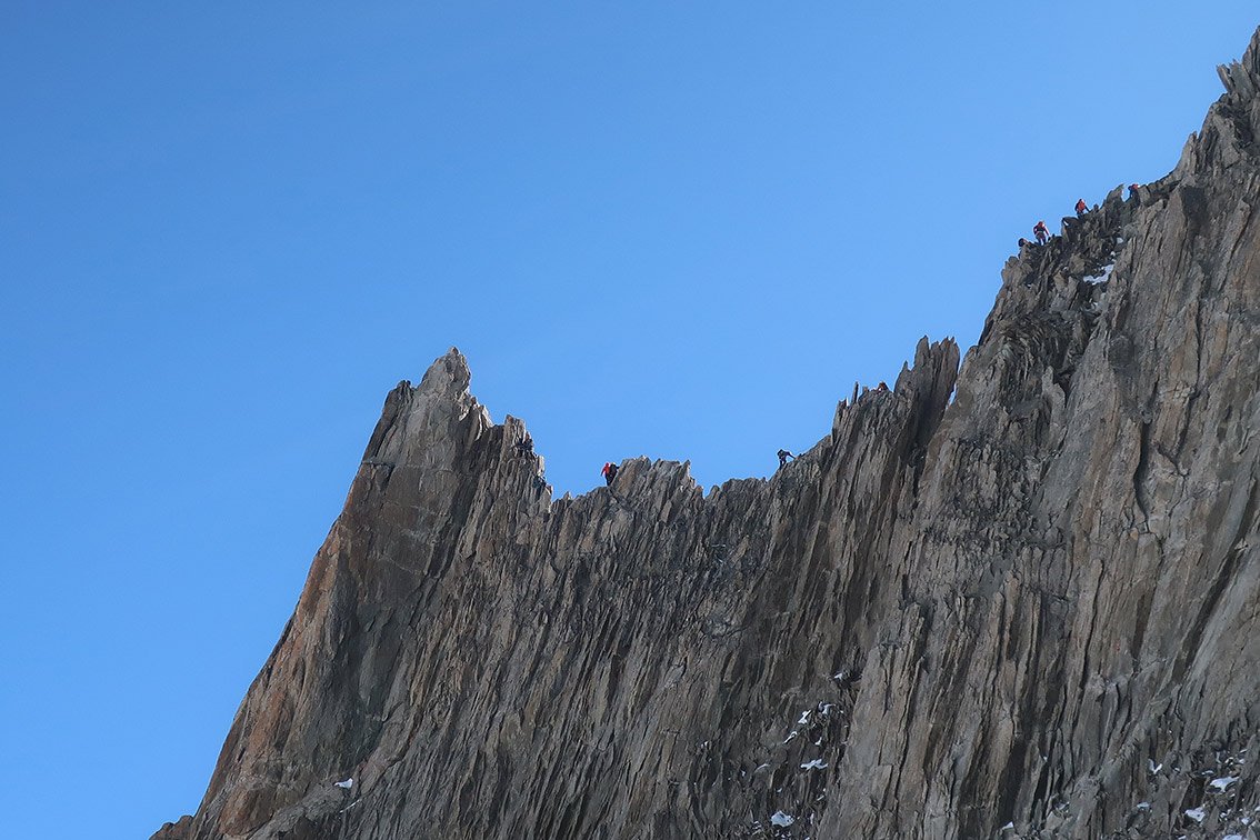 An schönen Tagen ist der Grat sehr gut besucht, auch von lokalen Bergführern, die dann kreuz und quer mit ihren Gästen zwischen den Seilschaften klettern.