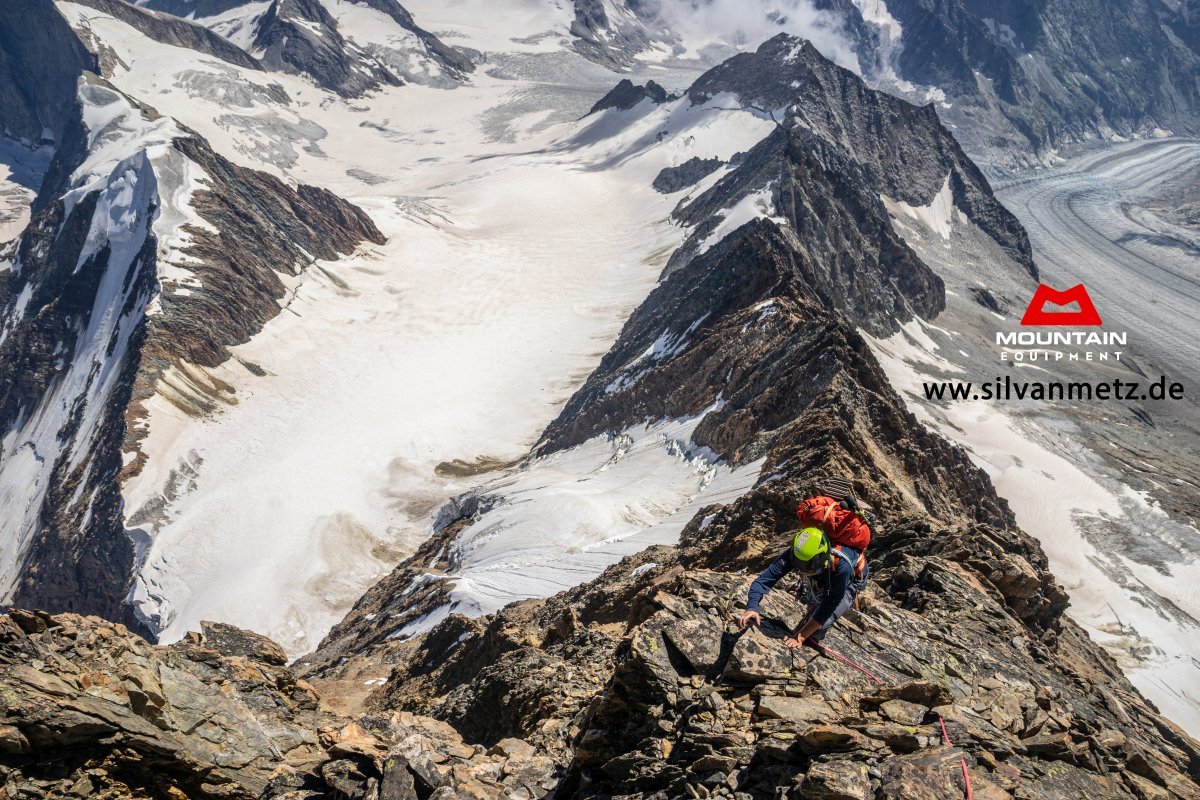 Der längste Grat im Berner Oberland, Goedekes Beschreibung („Ein Epos von klassischen Grat“) trifft es gut. Eine zermürbende, nicht enden wollende Aneinanderreihung brüchiger Grattürme, wobei nach jedem Turm der Gipfel gleich weit entfernt wirkt. Die riesigen Gletscherströme auf jeder Seite sorgen für hochalpines Ambiente.