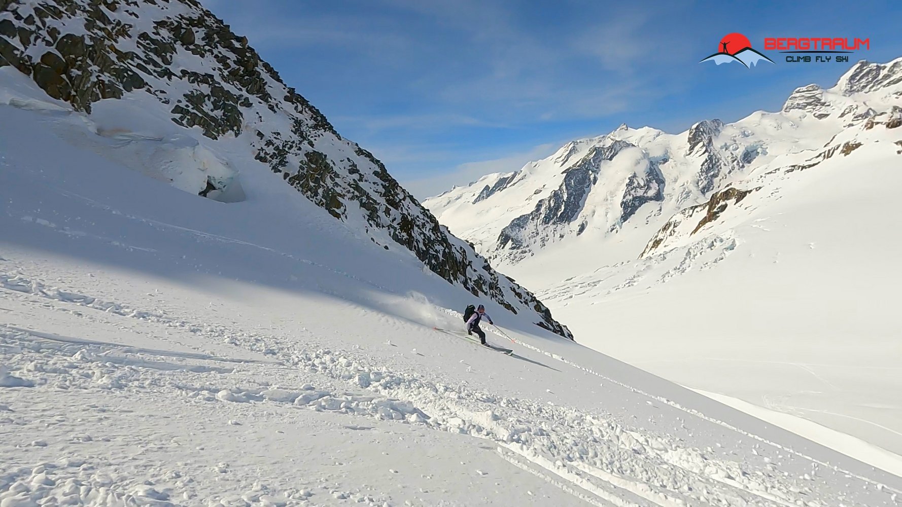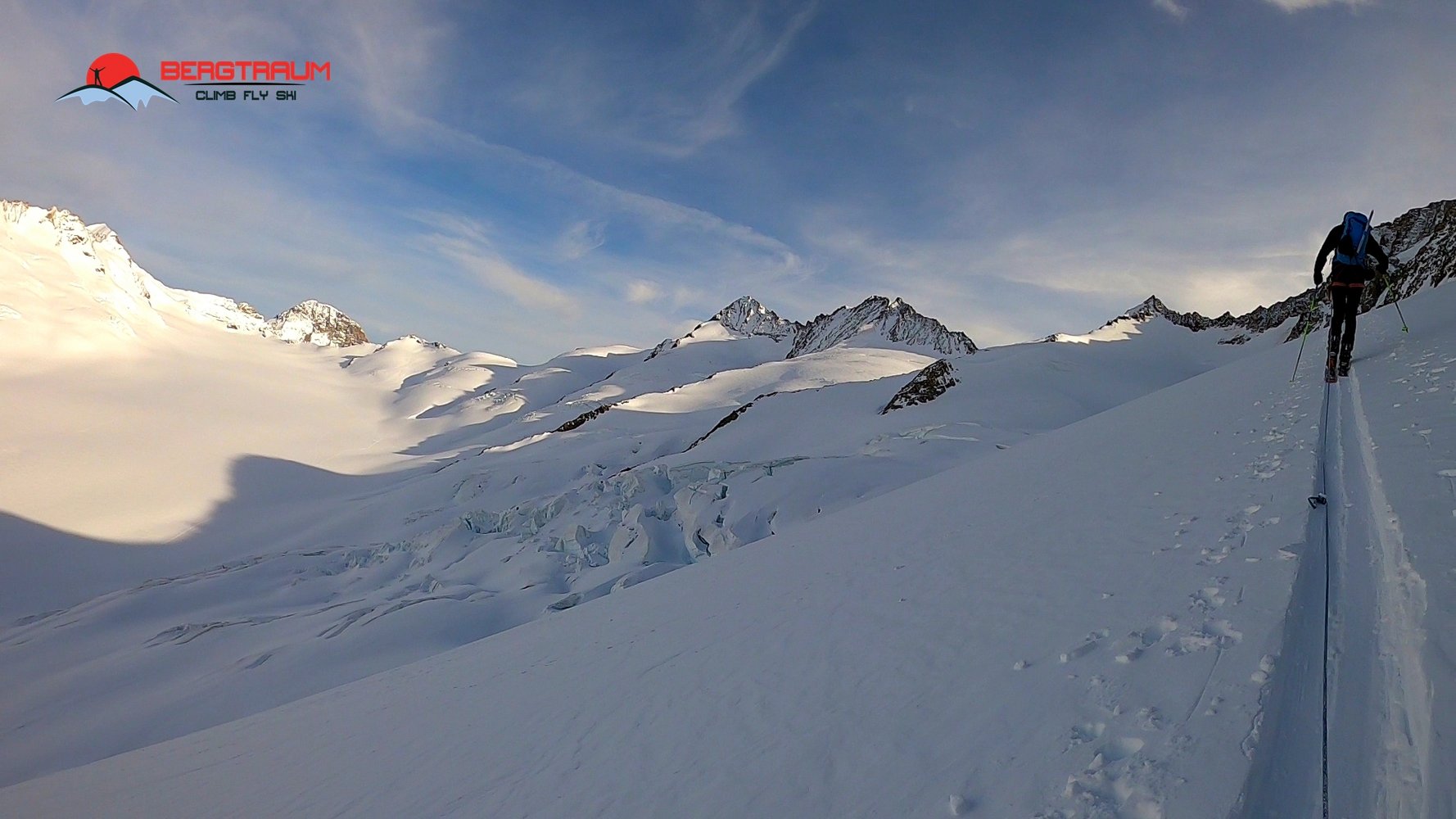 Abstieg: Über die Aufstiegsroute. Vom Skidepot mehrere schöne Abfahrtsmöglichkeiten Richtung W zum Ewigschneefäld runter. Von dort entlang der Aufstiegsroute zur Konkordiahütte zurück.