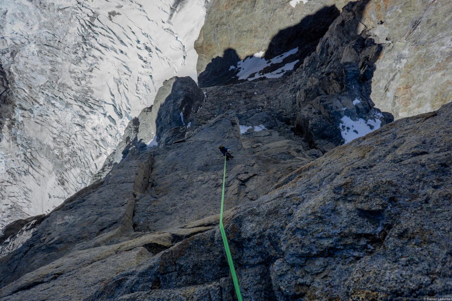 Die Hauptschwierigkeit liegt in der Einteilung der Route in Biwaks und das Wassermanagement, je nach Verhältnissen vom Einstieg des Südgrates bis nach den Abseilern der Noire kein Schnee oder Wasser.