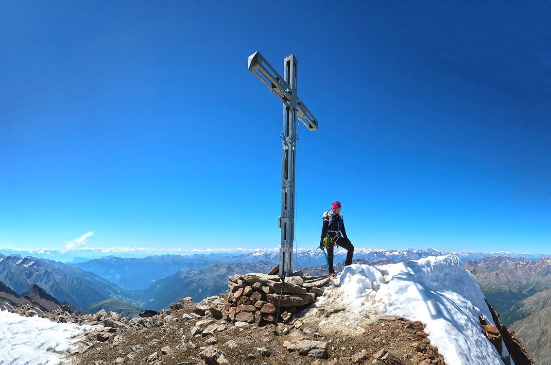Der Similaun von Vent (oder der Martin Busch Hütte) ist eine klassische, leichte Einsteiger-Hochtour. Der von uns beschriebene Weg führt von Vent hinauf zur Martin Busch- bzw. Simmilaunhütte, am Ende geht man über einen flachen Gletscher und steileren Blockgrat auf diesen fantastischen Aussichtsgipfel am Südrand der Ötztaler Alpen.