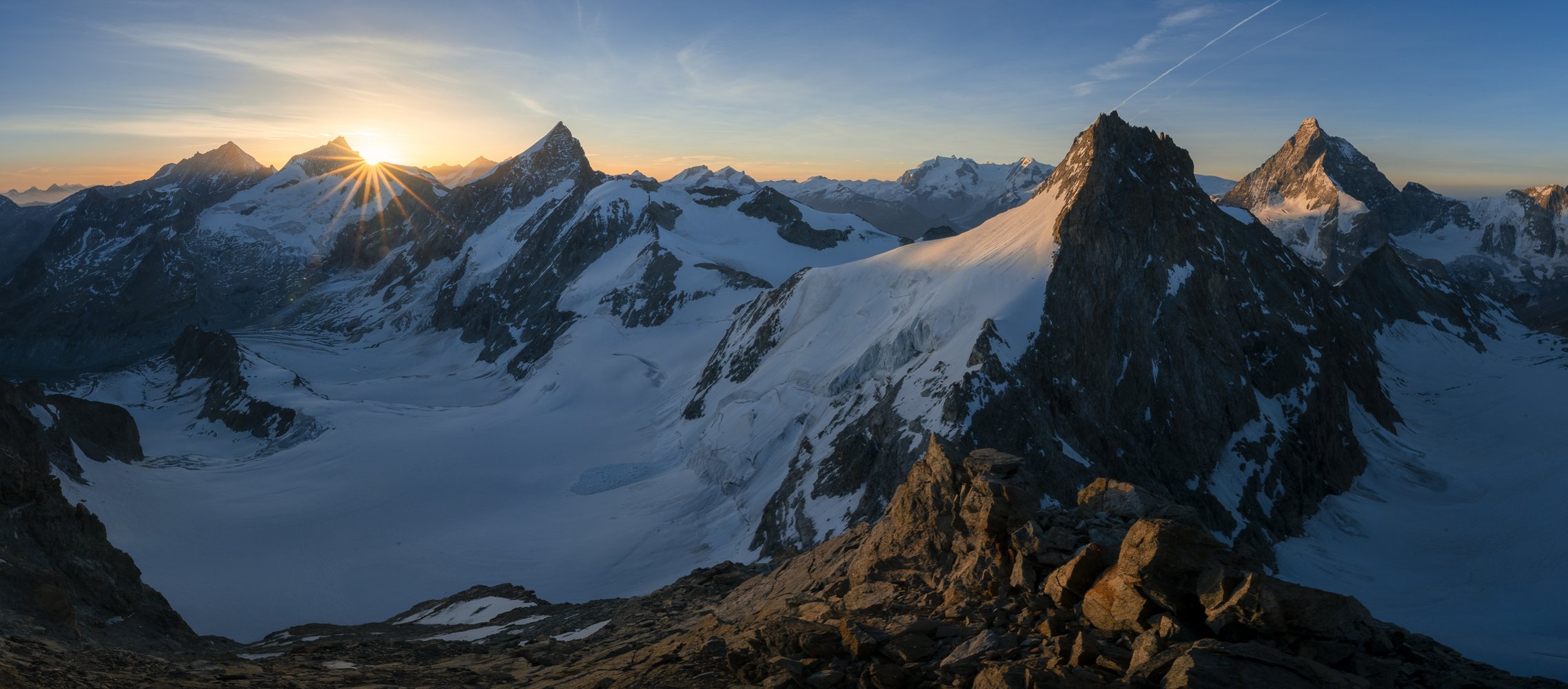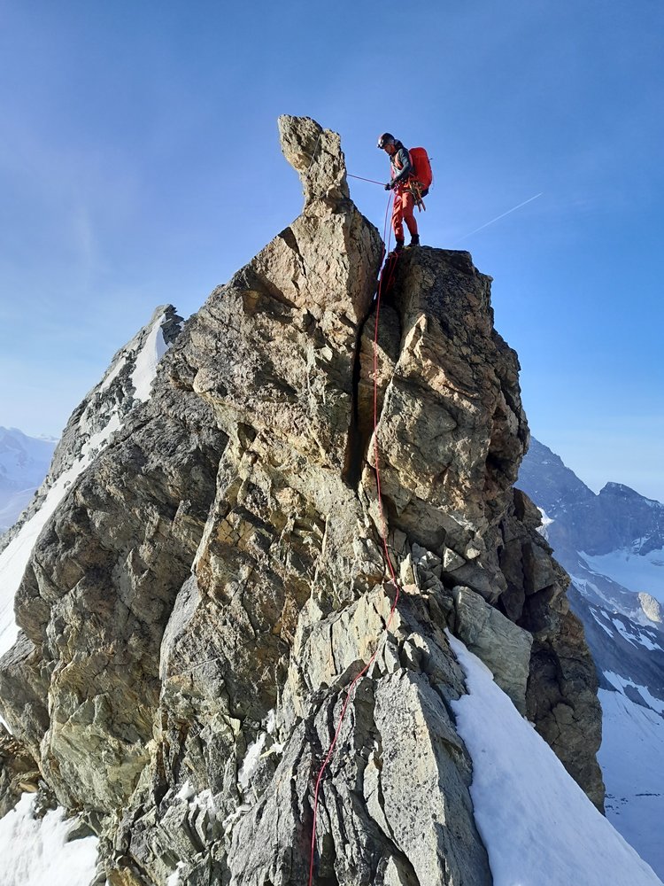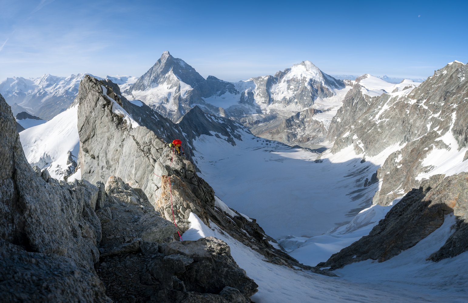Godeke schreibt "Ein echter Hammer", dem ist wenig hinzuzufügen. Ein endlos langer klassischer Grat, bei dem alle alpinen Register gezogen werden müssen: Brüchiger Fels, steile Kletterei, scharfe Grate, steiler Firn und Wechten, das alles garniert von allerlei Hinternissen wie schmelzenden Gletschern, offene Bergschründe, steinschlaggefährdete Rinnen und weite Strecken. Belohnt wird man mit einem der eindrucksvollsten Grate (und Aussicht) im ganzen Wallis. Eine elegante Linie, die sich sehen lassen kann.