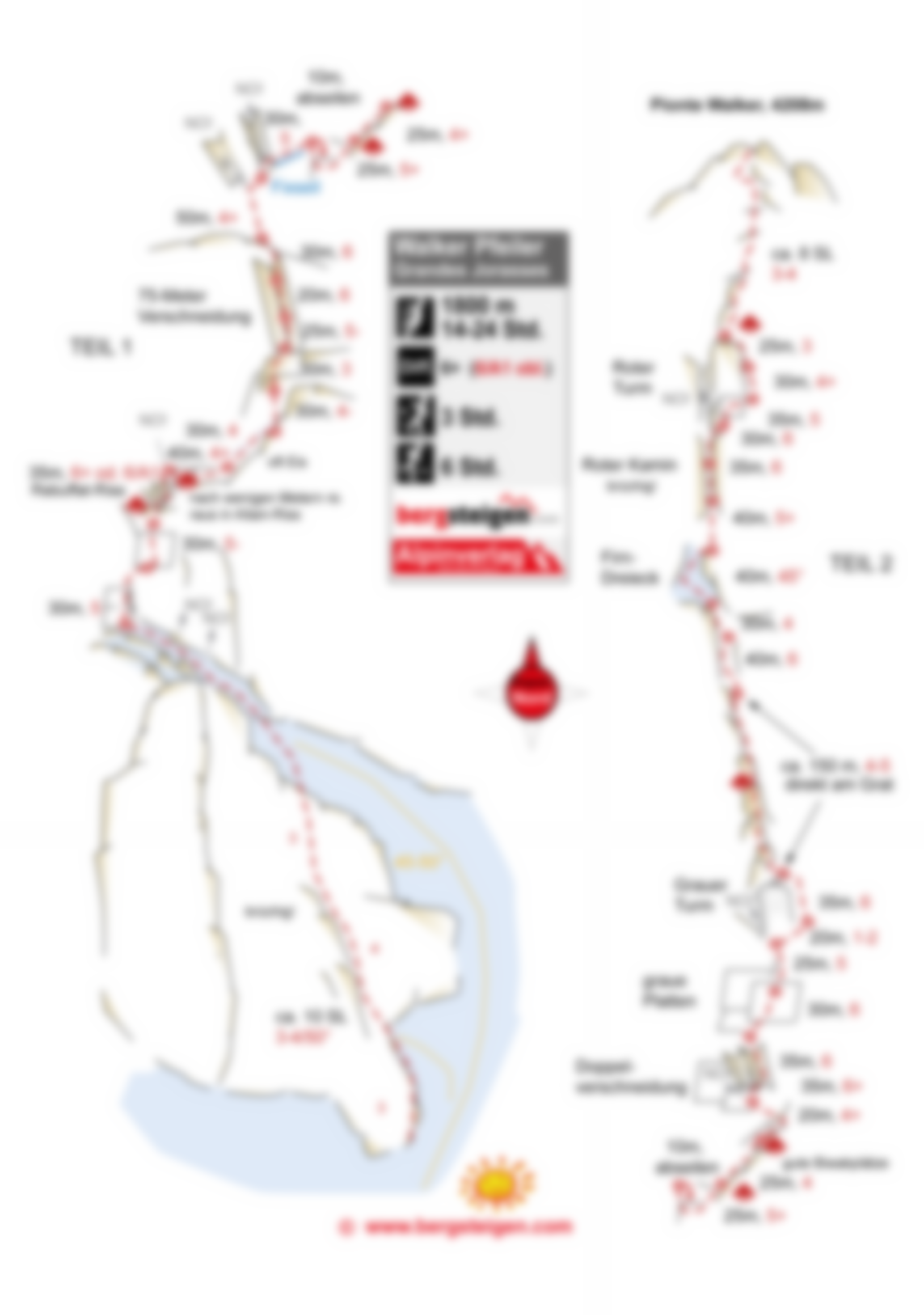 Kletterlänge 1800 m, ca. 56 Seillängen!