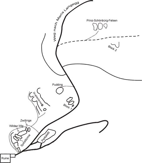 Im Gebiet um Ruine Aggstein gibt es zur Zeit etwa 50 Boulder wobei die meisten im Bereich Fb 6a - 6b sind. Die Art der Kletterei ist sehr abwechslungsreich, trickreiche Block - Boulder sind genau so vorhanden wie athletische Überhänge und bis zu 25m lange Traversen. Das Absprunggelände ist meistens unproblematisch, in den Dach-Bouldern ist es aber mit einen Spotter und einer Matte wesentlich entspannter zu klettern. Die Boulder sind überwiegend beschriftet und bei den meisten definierten Boulder sind Griffe durch Punkte gekennzeichnet.