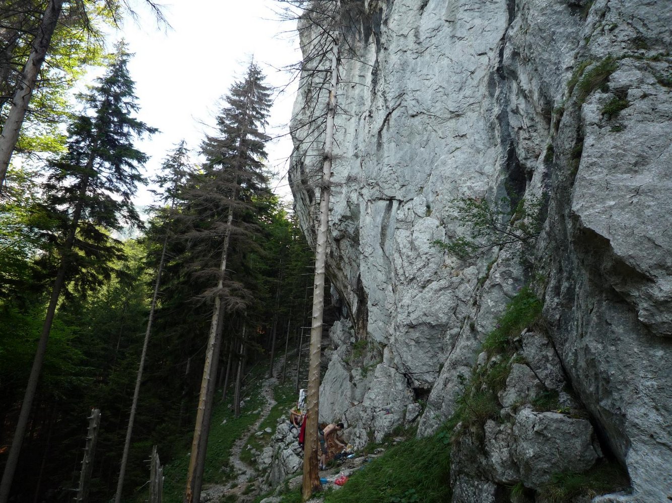 Vom Parkplatz zum Weichtalhaus und bei der Brücke auf dem beschilderten Ferdinand Mayr Weg Richtung Kientaler Hütte. Nach rd. 20 Min. sieht man links oben den Verlorenen Turm und rechts davon das Kippwandl nun noch kurz weiter und bevor der markierte Wanderweg deutlich nach rechts geht, zieht links parallel zum Kippwandl ein Steig (event. Steinmann) hinauf in einen Sattel. Hier links auf einem Jagdsteig über eine Wiese zur Wand absteigen.