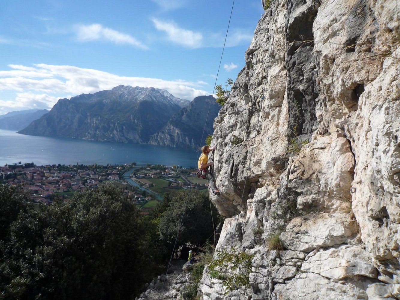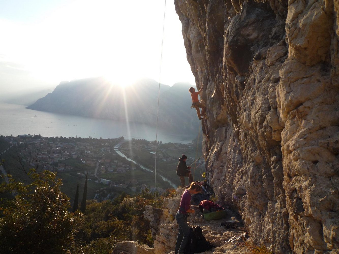 Der Name "Belvedere" heißt "Schöne Aussicht" und der Blick auf den Gardasee ist in diesem Klettergarten wirklich fantastisch. Dazu kommen sehr lohnende Routen in perfektem steilen Kalk sowohl für Einsteiger und Kletterkurse, als auch für die Ausdauercracks im 7. Franzosengrad. Oft weht starker Wind und die Parkplätze sind leider gleich voll. Sicher einer der landschaftlich besten Klettergärten am nördlichen Gardasee bzw. bei Arco!
