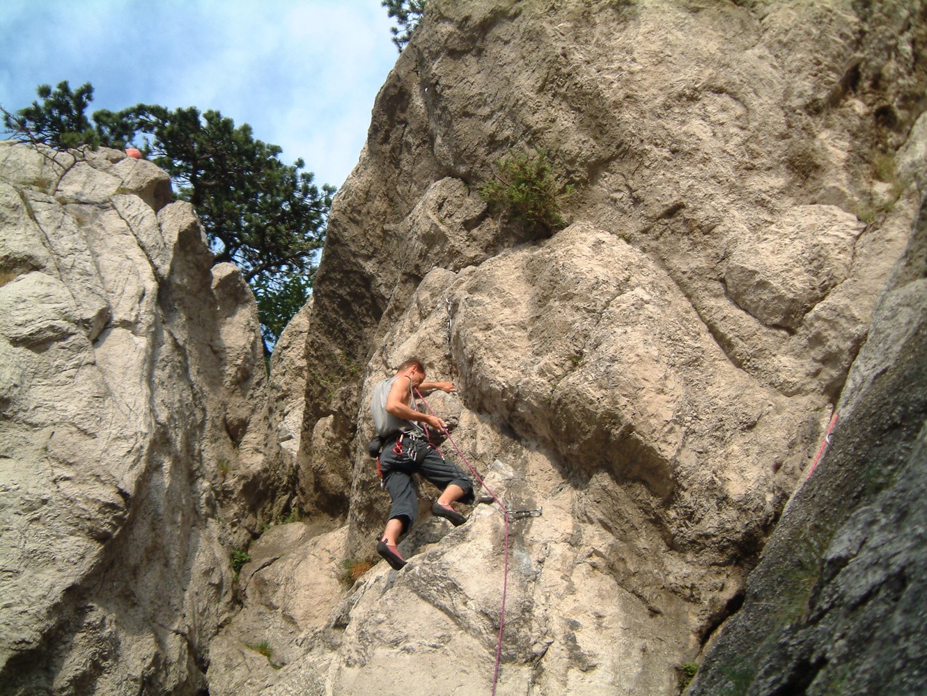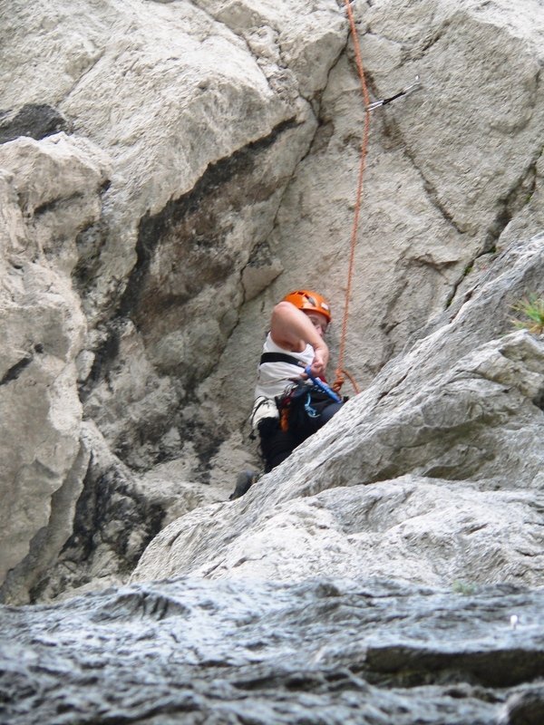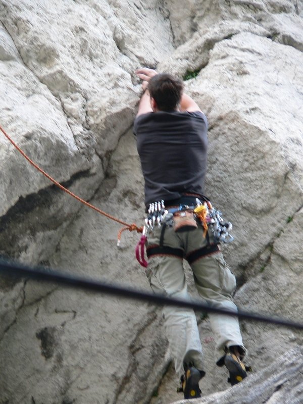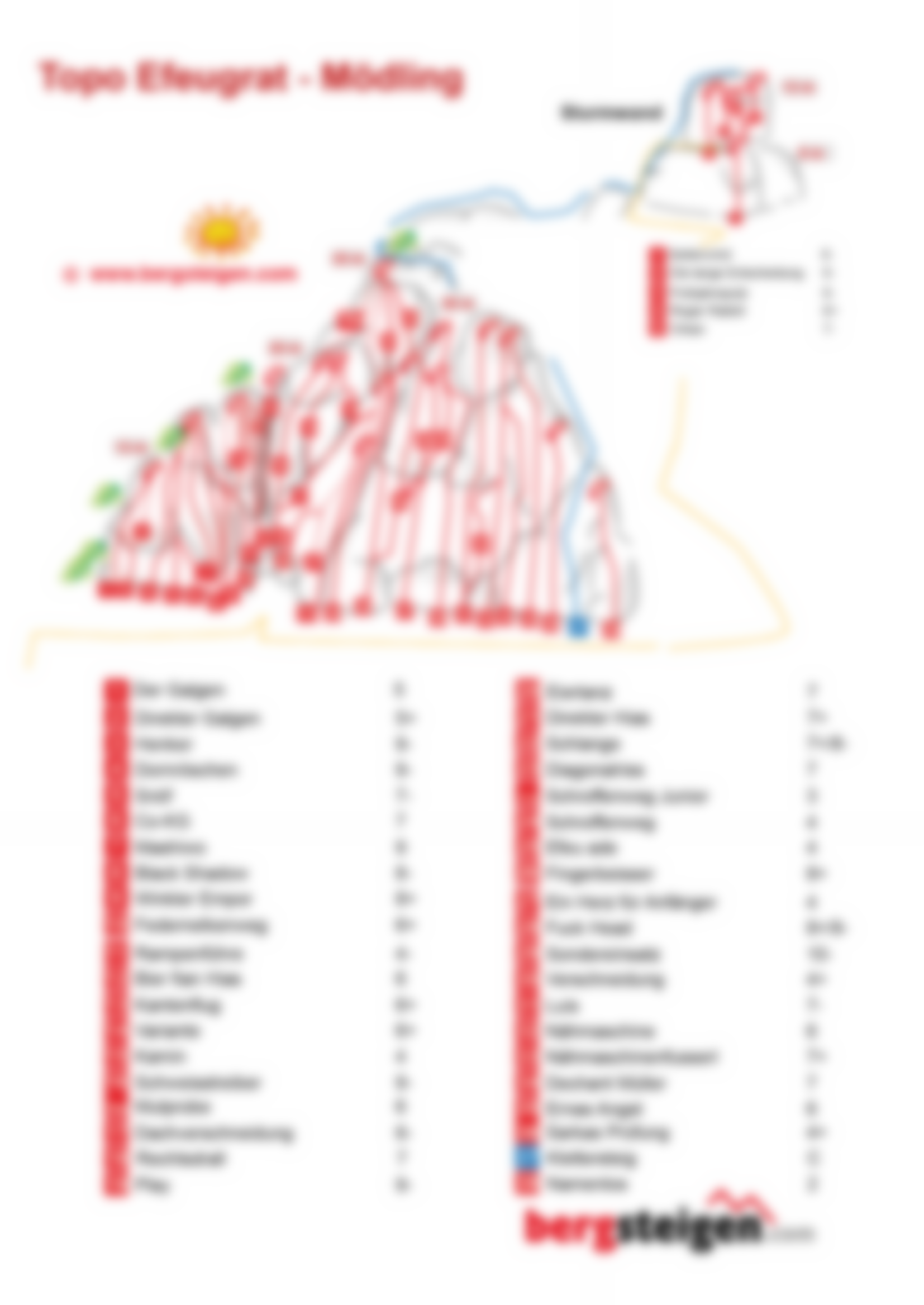 Etwas weiter oben ist die Sturmwand mit 4 kurzen Routen. Siehe Topo und Übersicht.