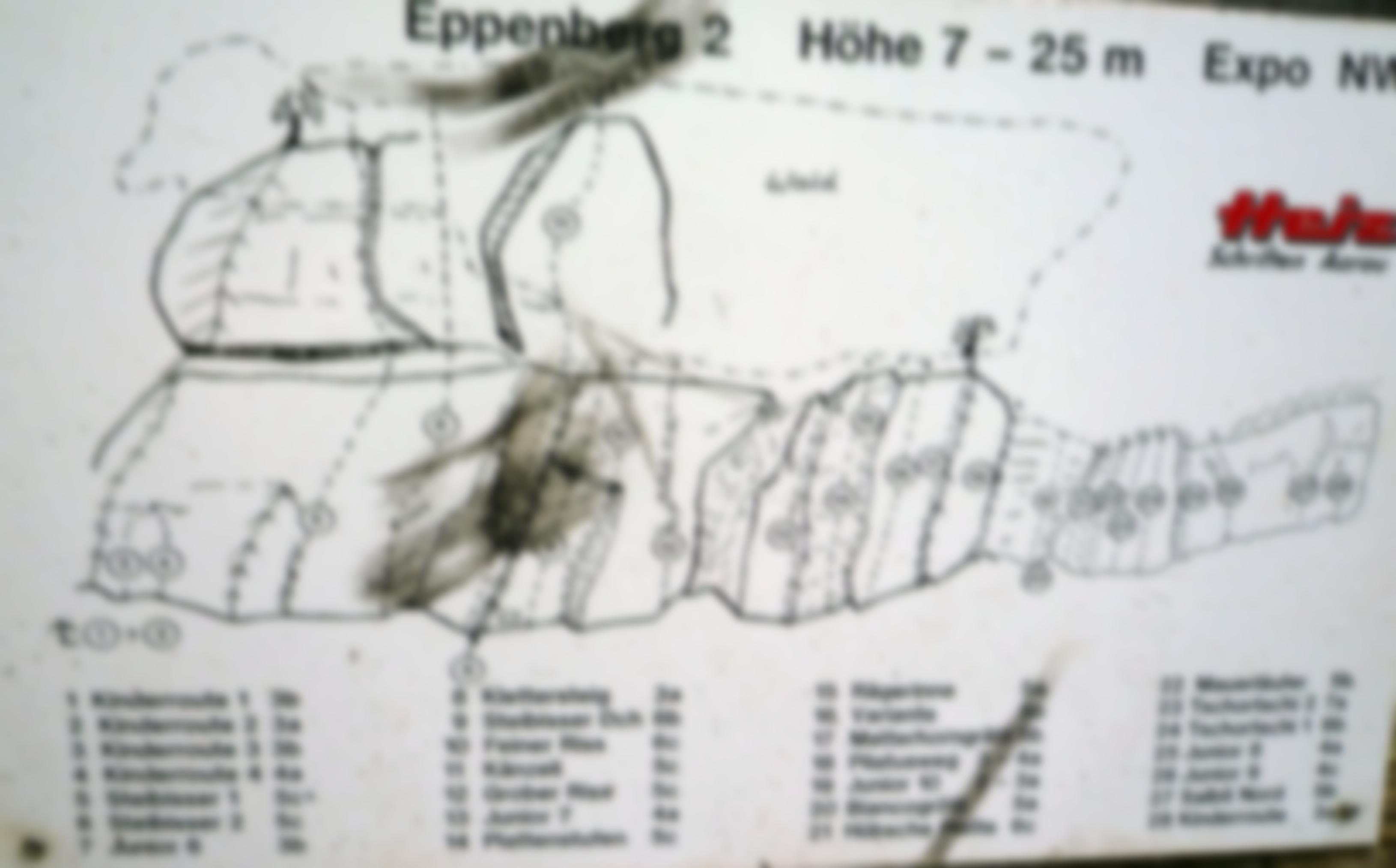 Der Klettergarten wird vorbildlich gehegt und gepflegt. Es gibt Einstiegsmatten, Bürsten, eine Feuerstelle mit Grill, perfekt. Leider ist der Abstieg (wenige Meter) vom Wanderweg bis unter die Flühe etwas heikel, nur der Einstiegsbereich voon Eppenberg 2 ist kinderfreundlich . Die Touren sind alle angeschrieben und es gibt Topofeln und einen kurzen Klettersteig.